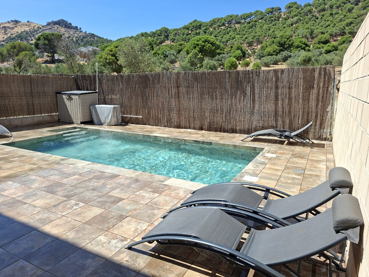 Fáilte abhaile whim, seod na corónach, an jacuzzi taibhseach sa phríomhsheomra atá ar fáil i rith na bliana agus snáithe ceoil ar fud an tí. Tá níos lú ná 1 uair an chloig ó Mhaidrid foirfe do shaoire ghearr le cairde, le do theaghlach, nó foirfe dóibh siúd atá ag lorg tearmainn rómánsúil lena gcomhpháirtí. Cóirigh duit féin an pléisiúr a bhaineann le do scíth a ligean sa Jacuzzi fairsing atá suite sa phríomhsheomra, socraithe leis an gceol is fearr leat tríd an gcóras snáitheanna ceoil comhtháite.