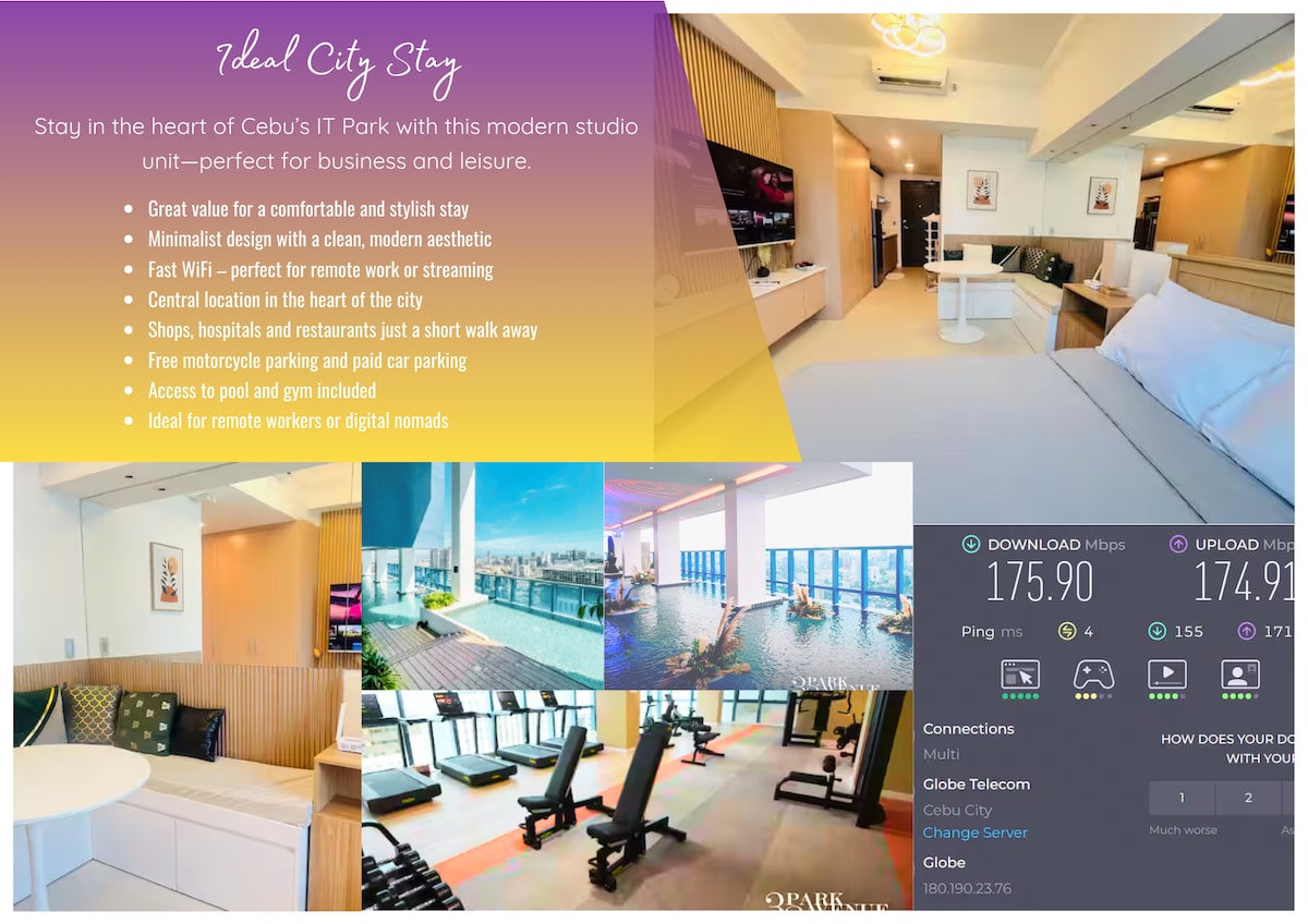 Studio w/ pool view inside IT Park & Near Mall