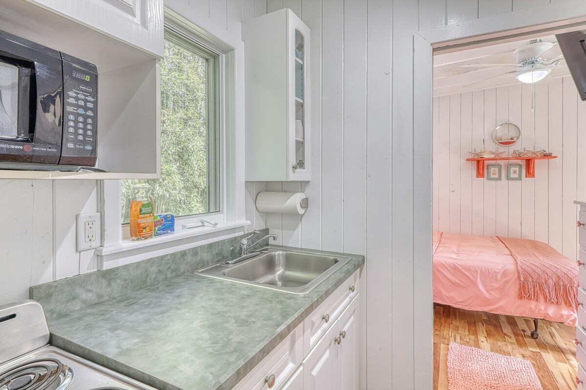 Fáilte go dtí ár svuít chluthar d'aíonna atá suite laistigh d'achar siúil ó bháid farantóireachta an Oileáin Dóiteáin agus gar go háisiúil do shaoráidí áitiúla! Cuireann an t - aonad príobháideach seo, atá ceangailte leis an bpríomhchuid dár dteach, tearmann compordach ar fáil do d'fhanacht. Téigh trí do bhealach isteach príobháideach féin isteach i seomra suí fáilteach, áit ar féidir leat scíth a ligean tar éis lá taiscéalaíochta. Tá leaba ar mhéid banríona sa seomra leapa, a chuireann oíche shuaimhneach chodlata ar fáil, agus cuireann seomra folctha in aice láimhe áisiúlacht agus príobháideacht ar fáil.