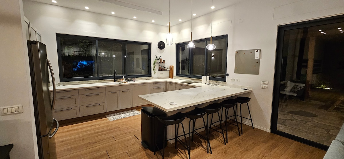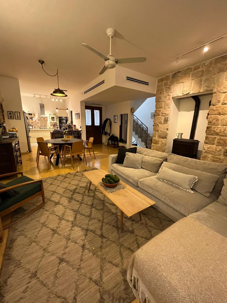 Fan i mo theach sómasach 3 sheomra leapa i sráidbhaile ciúin i lár Iosrael, ina bhfuil síleáil 6 mhéadar ar airde agus meascán uathúil de phop - ealaín uas - scála agus maisiúchán seanré. Bain sult as radhairc éirí na gréine ón bpríomhsheomra leapa agus luí na gréine ón ardán lánléargais le jacuzzi agus cithfholcadán lasmuigh. Tá cistin lánfheistithe, seomra do pháistí le leapacha bunc, seomra sábháilte (mamad) ina bhfuil áiteanna oibre agus súgartha, Wi - Fi tapa, Netflix, meaisín níocháin agus triomadóir san áireamh. Foirfe don té atá ag lorg compoird agus stíle!