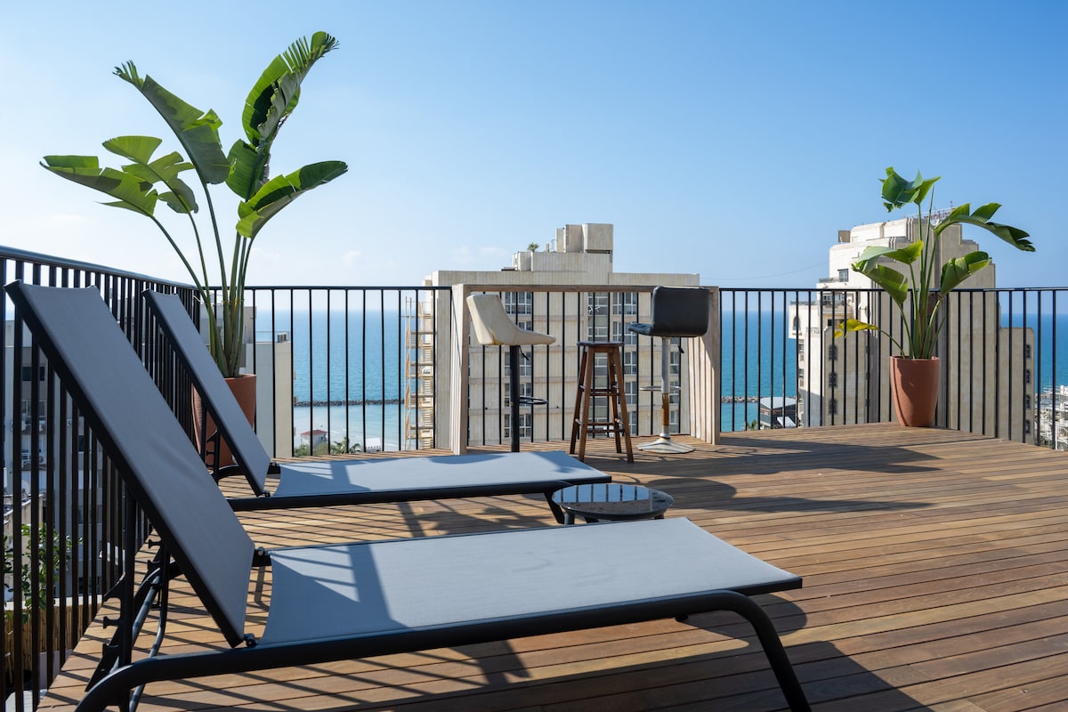 Árasán leaththeach fairsing i lár chathair Tel Aviv le radharc uirbeach an bealach ar fad chuig an bhfarraige. Dhá phríomhsheomra leapa ina bhfuil leithris phríobháideacha agus cithfholcadán. Seomra leapa singil breise. Balcóin ollmhór le toilg, bord itheacháin, beárbaiciú. Cistin mhór, seomra suí mór. Seomra leithris d'aíonna. Foirgneamh nua, ardaitheoir, spás páirceála príobháideach. Siúlóid 7 nóiméad go HaBima nó stáisiún traenach Shalom. Siúlóid 1 nóiméad go dtí an stáisiún iarnróid éadroim. Díreach in aice le Páirc Sarona.
