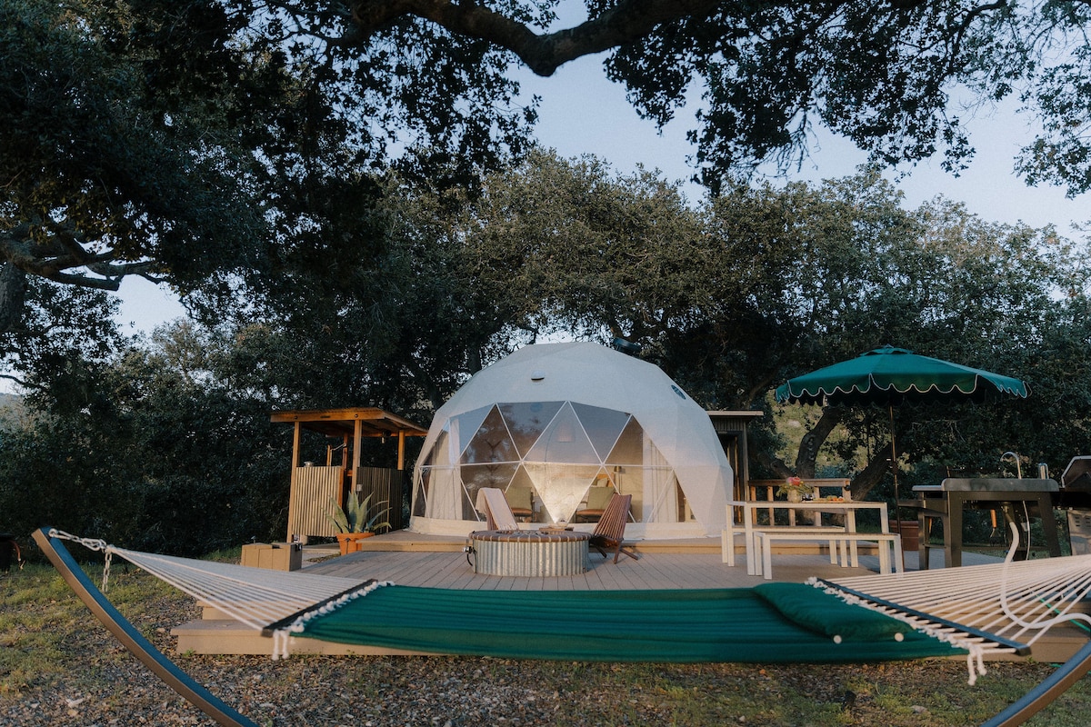 Glampáil Geo Dome le Radharc Draíochtúil. In aice le Pismo, SLO