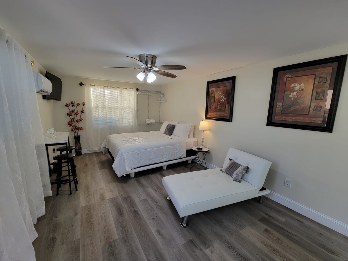 Árasán stiúideo. Décor eicléictiúil cois Cósta éadrom. Siúlóid sa vardrús, folcadán lánmhéide, Cistin feistithe go hiomlán. Príomh - chlós trópaiceach stíl thiar le lochán éisc. Páirceáil lasmuigh den tsráid. Gríoscán gáis agus áit itheacháin lasmuigh. Bloc amháin amach ó chosán Rothar Pinellas, siúl/rothaíocht chuig croílár stairiúil Dunedin, Toronto Blue Jays oiliúint earraigh. Nóiméid go dtí an 3 cinn de na tránna is fearr sa tír! Clearwater Beach, Oileán na Meala, agus Oileán Caladesi.