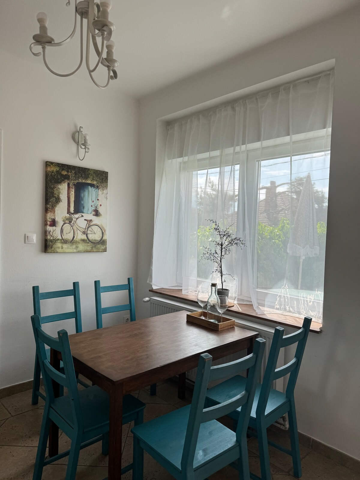 Árasán íoslach le hiontráil ar leith, le fuinneoga, i dteach le gairdín glas ar imeall Bhúdaipeist. Tá 35 m2 san árasán, 1 seomra leapa, seomra suí le cistin Mheiriceánach agus seomra folctha, a thugann compord leordhóthanach do 2 dhuine fásta + 1-2 pháiste. Cistin dea-fheistithe, cuisneoir le reoiteoir, micreathonnán, sorn, giota, gléasra caife, mias, gloiní, spíosraí bunúsacha, caife. Wifi saor in aisce agus páirceáil os comhair an gheata nó sa chlós. Tá lochtán mór ar chúl ar fáil do na haíonna. Tá scíth chiúin ráthaithe.