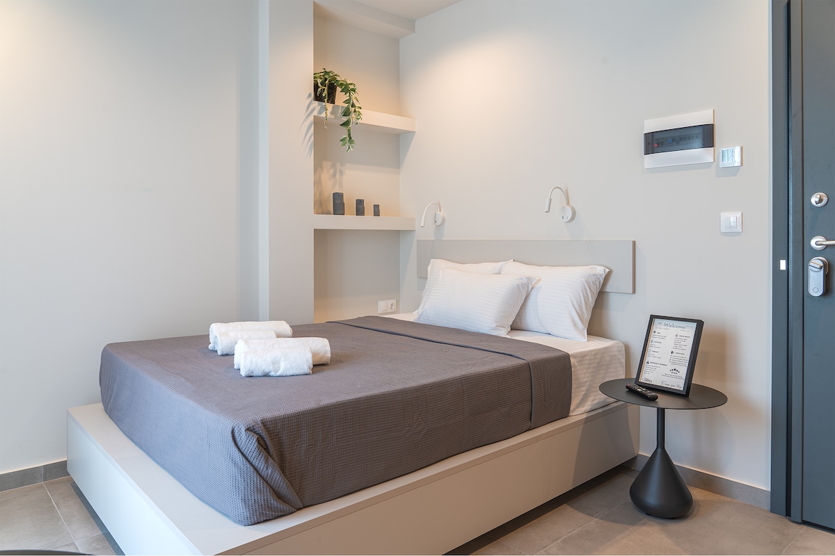 - Suite i lár Thessaloniki,ag Sráid Mitropoleos,áit a bhfuil gach rud atá uait 2 nóiméad ar shiúl de shiúl na gcos. - Rochtain éasca ar gach mórbhealach iompair (tacsaí, bus) - aonad A/C le haghaidh teasa/fuar Seomra folctha i stíl an óstáin - Tocht,piliúir agus braillíní ardchaighdeáin - Iron/clár iarnála Cuirtíní agus dallóga a dhorchaíonn an seomra folctha - Cé go bhfuil sé suite i gcroílár na cathrach, tá an áit dea - chóirithe ó thorann seachtracha - Foirfe do lánúineacha, do thaistealaithe aonair,do chairde agus do theaghlaigh