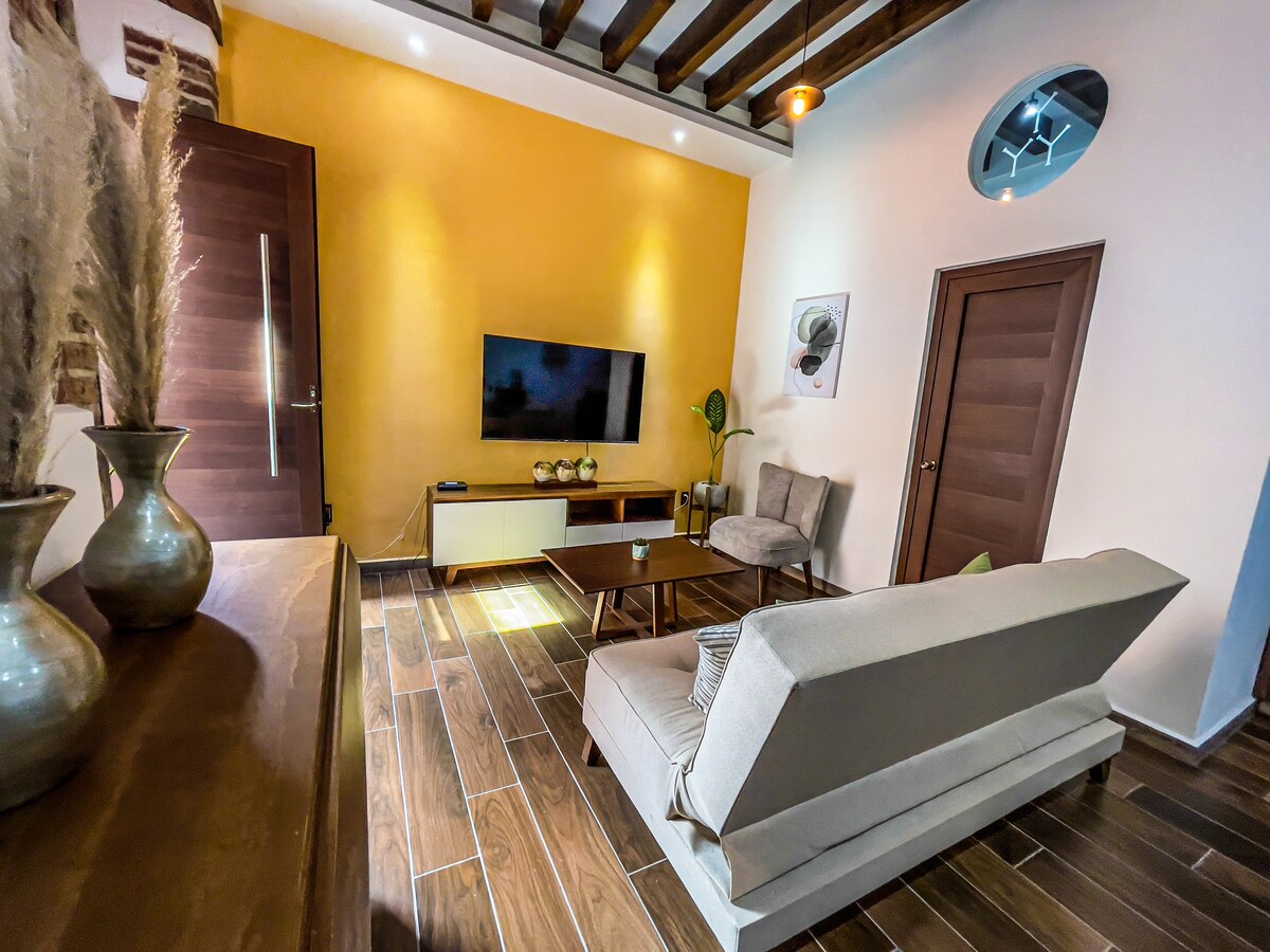 Faigh blaiseadh de mhórgacht Ionad Stairiúil Chathair Mheicsiceo ó do thearmann in Isabel la Católica 22! Cuireann árasán eisceachtúil i bhfoirgneamh athchóirithe teach nua - aimseartha ar fáil i dtimpeallacht stairiúil. Téann céimeanna ó Calle Madero agus osna ón Zócalo, áit a thumann tú i gcroílár Chathair Mheicsiceo. Cumasc ar ardchaighdeán agus stíl chun fanacht dodhearmadta a chur ar fáil duit. Éalaigh go dtí an tearmann comhaimseartha i gcroílár an ama atá caite An Chathair i do lámha, an Teach i do Chroí!