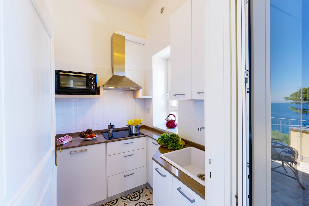Lonnaithe i gceantar cnocach leath bealaigh idir Positano agus Sorrento, tugann an teach gleoite seo radharc iontach ar Oileáin Li Galli agus gairdín príobháideach inar féidir leat taitneamh a bhaint as suaimhneas na tuaithe máguaird i scáth na gcrann olóige. Is é an rogha iontach é dóibh siúd atá ag lorg áit chluthar in áirithe, gan a bheith ar an bhféidearthacht teacht ar chinn scríbe amhail Sorrento (5 km), Positano (9 km) agus Amalfi (25 km) in achar gearr.