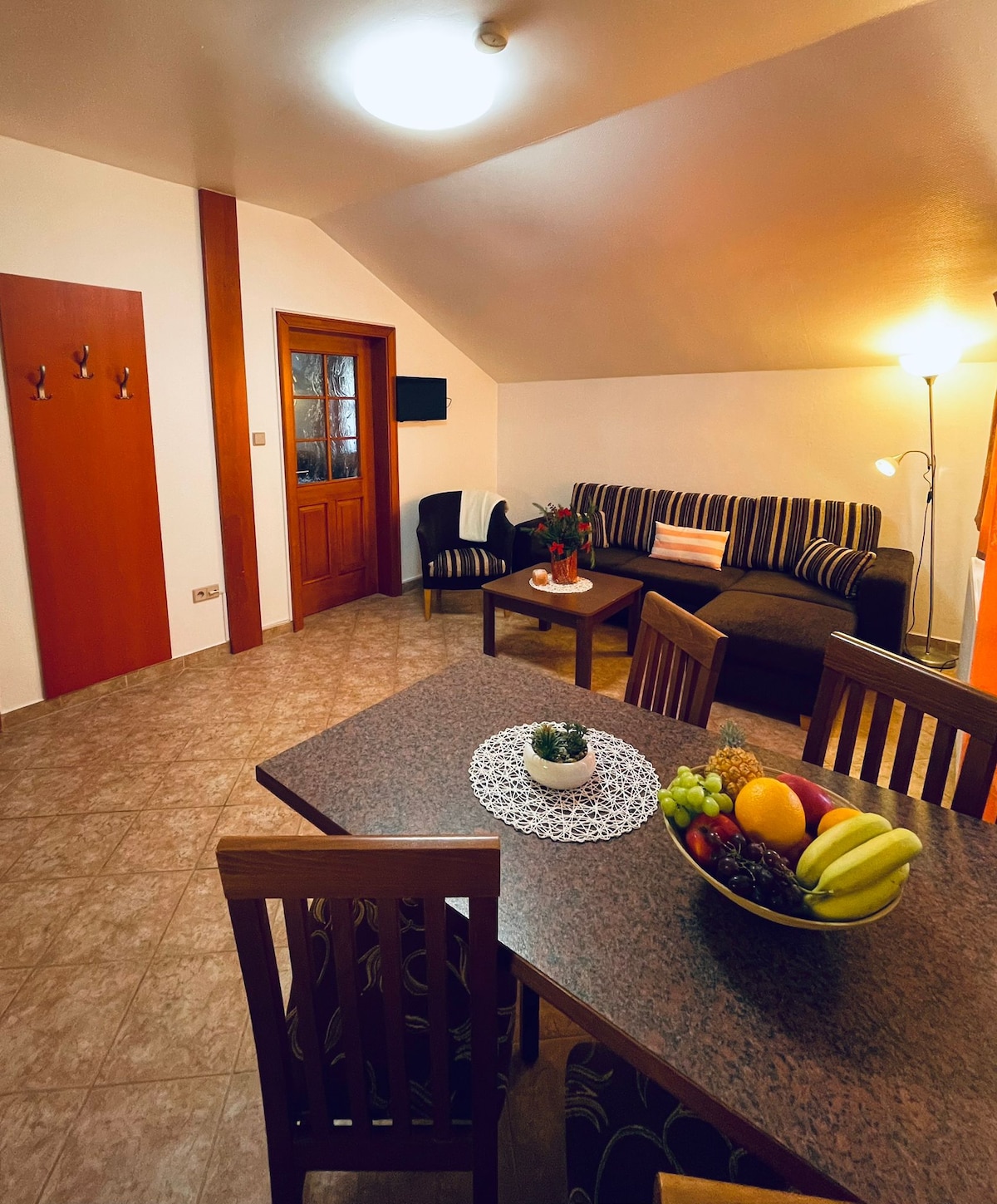 Tá an t - árasán fairsing teaghlaigh seo suite i gcroílár lár stairiúil gleoite Cesky Krumlov agus is áit iontach é do theaghlaigh nó do ghrúpaí níos lú. Cuireann sé meascán de chompord agus atmaisféar teolaí ar fáil a thumann thú láithreach. Tá suíomh an árasáin foirfe chun an chathair a iniúchadh – tá na príomhradhairc, na bialanna agus na caiféanna go léir timpeall an chúinne go litriúil.