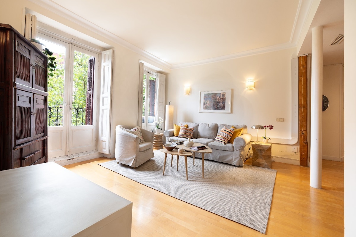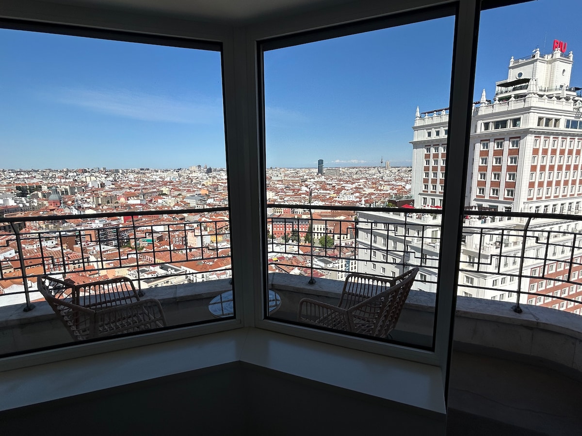 Teach séasúrach eisiach i gceann de na foirgnimh is suntasaí i Maidrid. Do chliaint a thugann cuairt ar Mhaidrid mar cheann scríbe cultúrtha, gairmiúil nó oibre. Tá sé feistithe go sómasach, tá dhá sheomra leapa ann ina bhfuil leapacha fairsinge agus vardrúis ionsuite, cistin agus dhá sheomra folctha iomlána agus seomra suí iontach ina bhfuil rochtain ar ardán a bhfuil radhairc iontacha ag a airde ard.