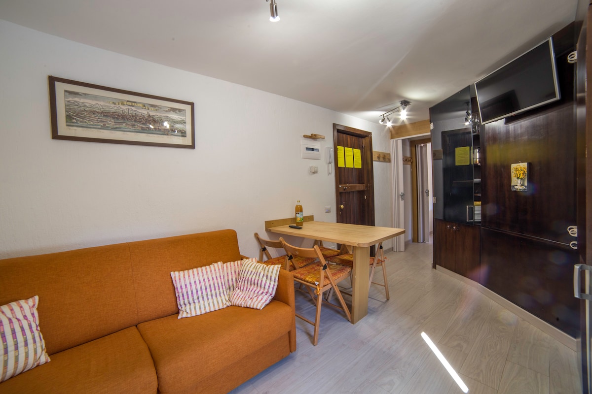 Árasán cluthar teolaí in Aosta, urlár leathdhéanach, ardaitheoir, balcóin gheal, mhór atá os comhair an deiscirt agus atá ag breathnú amach ar na sléibhte i suíomh ciúin timpeallaithe ag gairdín comhchoiteann. Foirfe chun cuairt a thabhairt ar Aosta nó túsphointe do na gleannta máguaird (7 nóiméad sa charr don charr cábla Aosta - Pila). Ollmhargadh orgánach níos lú ná 80 méadar agus bialann pizzeria níos lú ná 50 m. Ina bhfuil seomra leapa, seomra folctha, cistin fheistithe, seomra suí ina bhfuil leaba thoilg, balcóin.