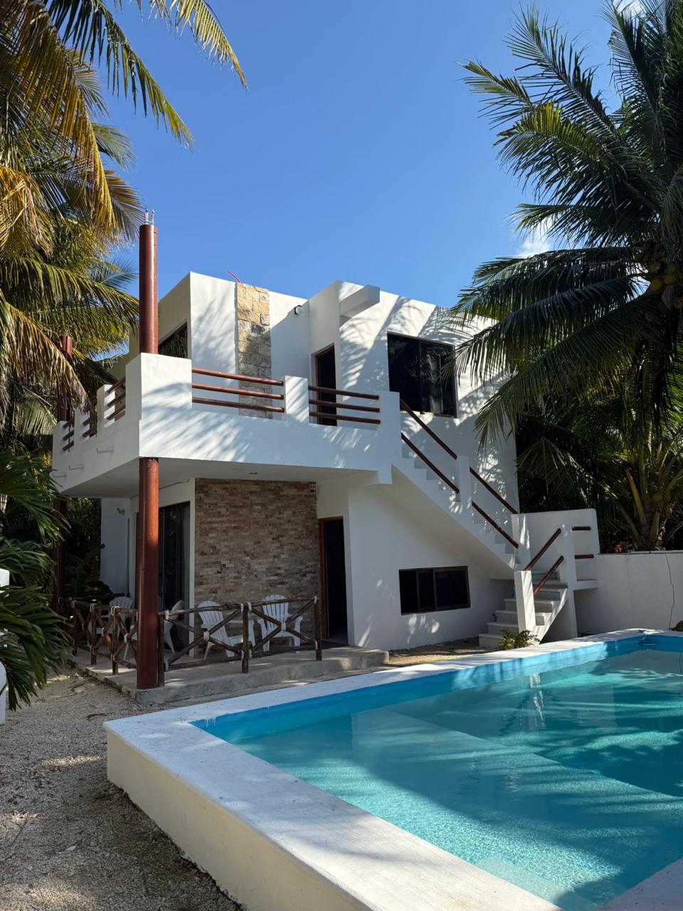 Alojamiento frente al mar ideal para hasta 6 personas, perfecto para disfrutar de la playa con comodidad y privacidad. La casa cuenta con alberca privada, sala, cocina y comedor, 3 recámaras y 4 baños completos con ventilador y aire acondicionado Un espacio perfecto para relajarse, disfrutar del mar y pasar tiempo en familia o con amigos.