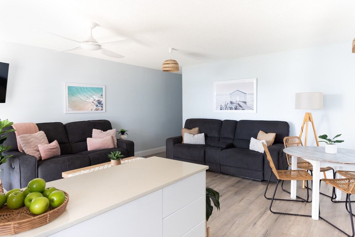 Aonad fairsing ar urlár na talún i gcoimpléasc beag ciúin cónaithe ag Picnic Point Esplanade. Bain sult as radhairc uisce ó do chistin mhór fhairsing, tolglann agus seomraí leapa , foirfe don tsaoire sin agus do scíth a ligean. Bain sult as snámh le trá go díreach os comhair nó i linn snámha casta. Wi - Fi /netflix gan teorainn. Rochtain chun céaslaí a sheasamh. Córas scoilte a théamh/a fhuarú i bpríomhsheomraí brm agus seomraí suí. Garáiste cianda le rochtain dhíreach ar an aonad. Flúirse roghanna bia/siopadóireachta go léir laistigh de shiúlóid ghearr chothrom.