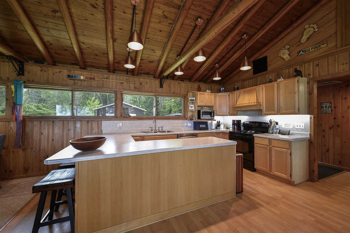Déan an gnóthas a thrádáil ar son na síochána agus na ciúine ag ár dtearmann teolaí, díreach 5 nóiméad ó chroílár Sister Bay. Agus é suite ar 1.6 acra de choillte suaimhneacha atá lán le crainn áille feá, is é an teachín an áit saoire fhoirfe atá agat. Ciceáil siar ar an deic tosaigh fhairsing, lig do scíth ar an bpóirse scagtha, agus sáigh san áilleacht nádúrtha ar fad. Taobh istigh, buaileann vibes nua - aimseartha lár an chéid le compord teolaí, le gach rud a theastaíonn uait le haghaidh fanacht suaimhneach gan strus.