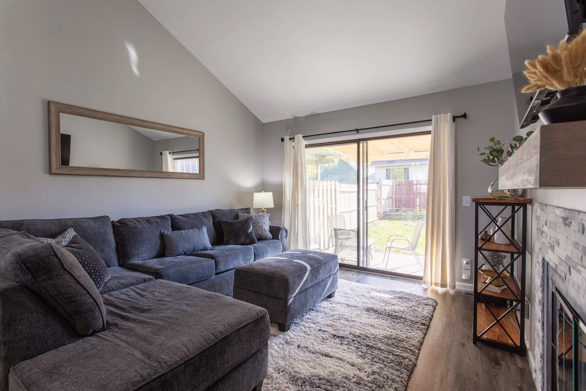 Fan ag ceann de na lóistíní Airbnb is mó cáil in Champaign, atá suite i gcomharsanacht chiúin in aice le UIUC! Tá cistin nua-aimseartha le fearais cruach dosmálta agus cuntair eibhir sa teach 2 sheomra leapa seo atá athmhúnlaithe go hálainn. Tá tolg sófas sómasach agus teilifís chliste sa spás maireachtála. Tá tochtanna móra móracha i gceachtar seomra leapa chun codladh suaimhneach a fháil. Tá seomra folctha atá cosúil le spá, garáiste le haghaidh 2 charr, agus cúlchlós suaimhneach ann freisin. Foirfe do theaghlaigh, do lánúineacha, do ghairmithe atá ag taisteal agus do thréimhsí fanachta fada!