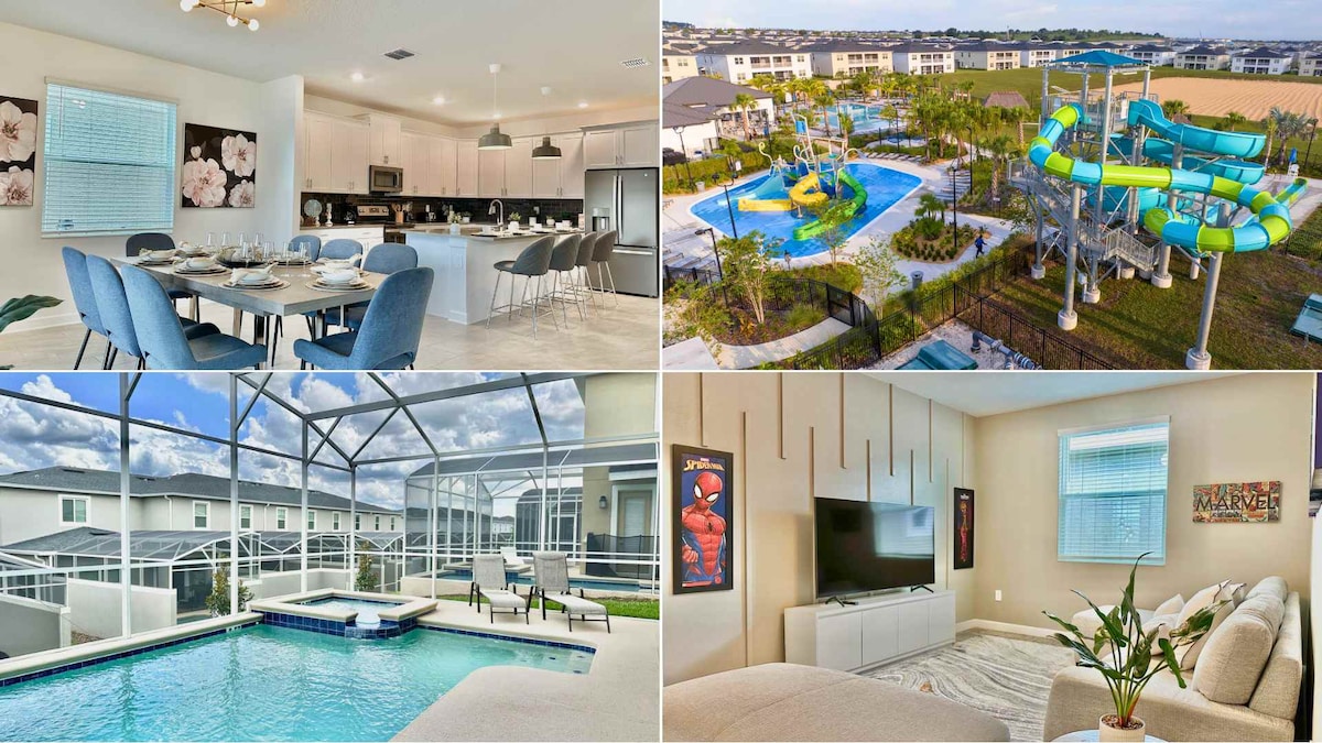 Bain sult as ár nDíol Luatháirithinte agus Sábháil! ✨ Aimsigh éalú iontach ag Ice Saber Manor - Villa iontach 6 leaba ina bhfuil seomraí REOITE agus SPIDER - Man, 4 phríomhsheomra álainn agus roghanna siamsaíochta gan deireadh! Tum thú féin in iontais chineamatacha le hamharclann SCANNÁN Star Wars, cuir crios ar do cheanáin sa cheantar sna tithe tábhairne nó bain sult as ár n - AMHARCLANN COIS LINNE! Lig do scíth i do Pool & Spa téite nó bain sult as ár BPÁIRC Uisce! Déan iniúchadh ar Disney ó chompord an tí nua - aimseartha seo atá suite in ionad saoire álainn!