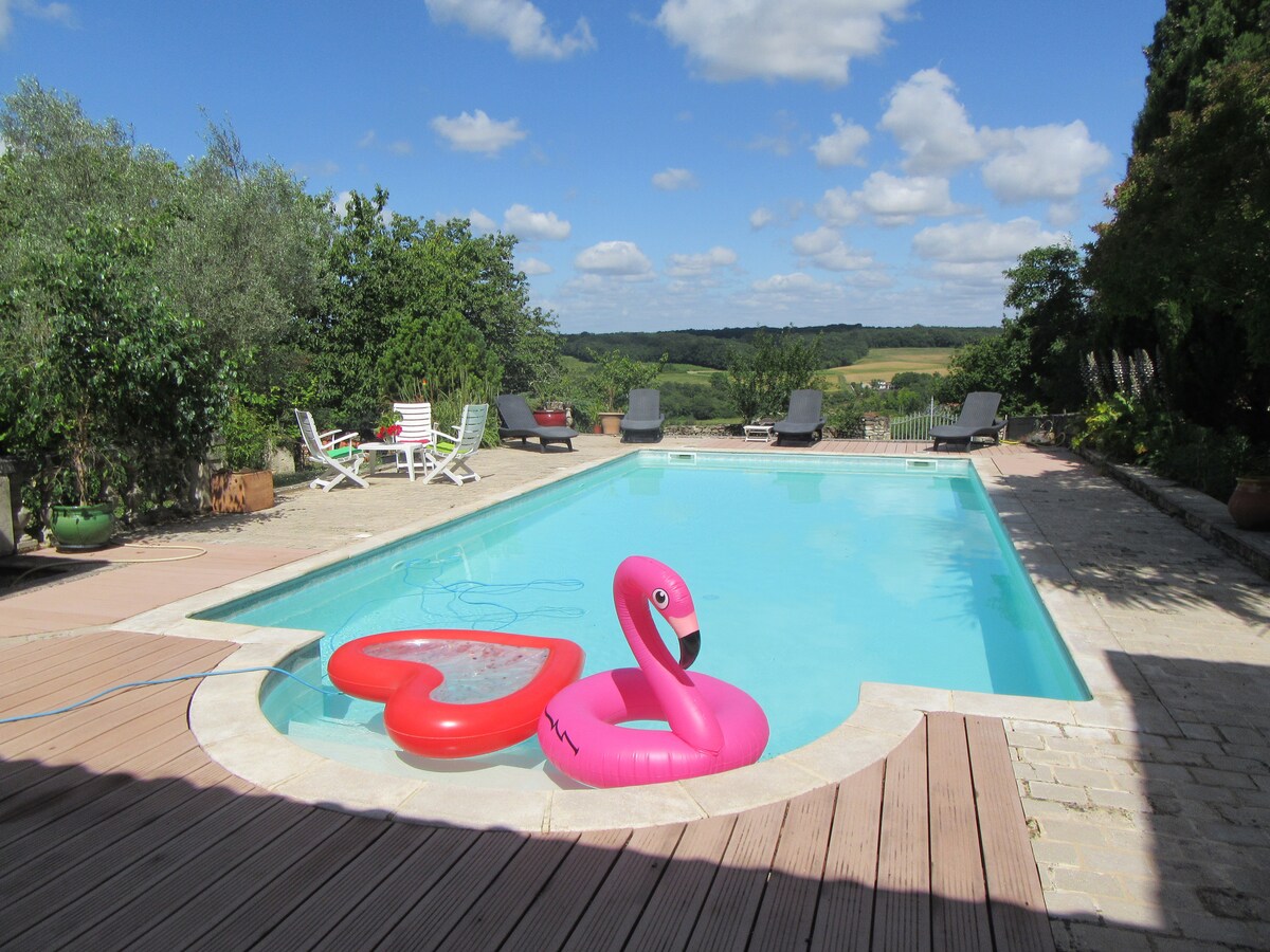 Lonnaithe i gceann de na sráidbhailte is áille in Charente, cuireann an chabourne barántúil seo, atá athchóirithe go hiomlán, radhairc lánléargais ar fáil ar ghleann Charente agus ar an abhainn, ar féidir leat smaoineamh air ón ardán. Conair fánaíochta, sreabhadh rothar, áiteanna snámha in aice láimhe agus tithe tábhairne... Sa samhradh, is parthas é ár sráidbhaile! Tugann fíorchocún, an sorn adhmaid agus an sabhna atmaisféar teolaí suaimhneach don áit. Tá an éadaí leapa nua agus an - chompordach.