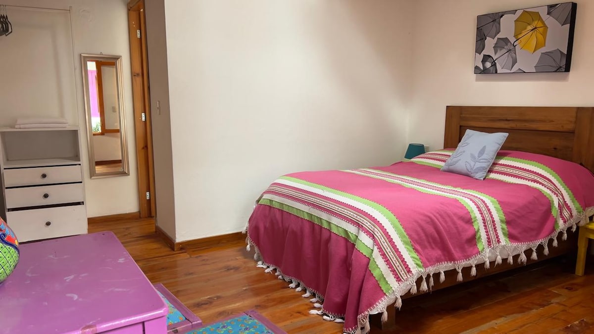 Seomra príobháideach ina bhfuil leaba rímhéide do dhaoine atá ag lorg an chompoird agus an spáis is mó. Níl ach siúlóid 10 nóiméad ó Ionad Stairiúil San Cristobal, sa Barrio de Mexicanos ciúin. Suíomh 📍 iontach: - Siúlóid 10 nóiméad go dtí an tIonad Stairiúil - An - ghar do Santo Domingo - teampall coilíneach íocónach - Fáil éasca ar shiúlbhealaí do choisithe - Comharsanacht shábháilte chiúin - oiriúnach chun do scíth a ligean - Nasc den scoth le margaí áitiúla agus bialanna tipiciúla