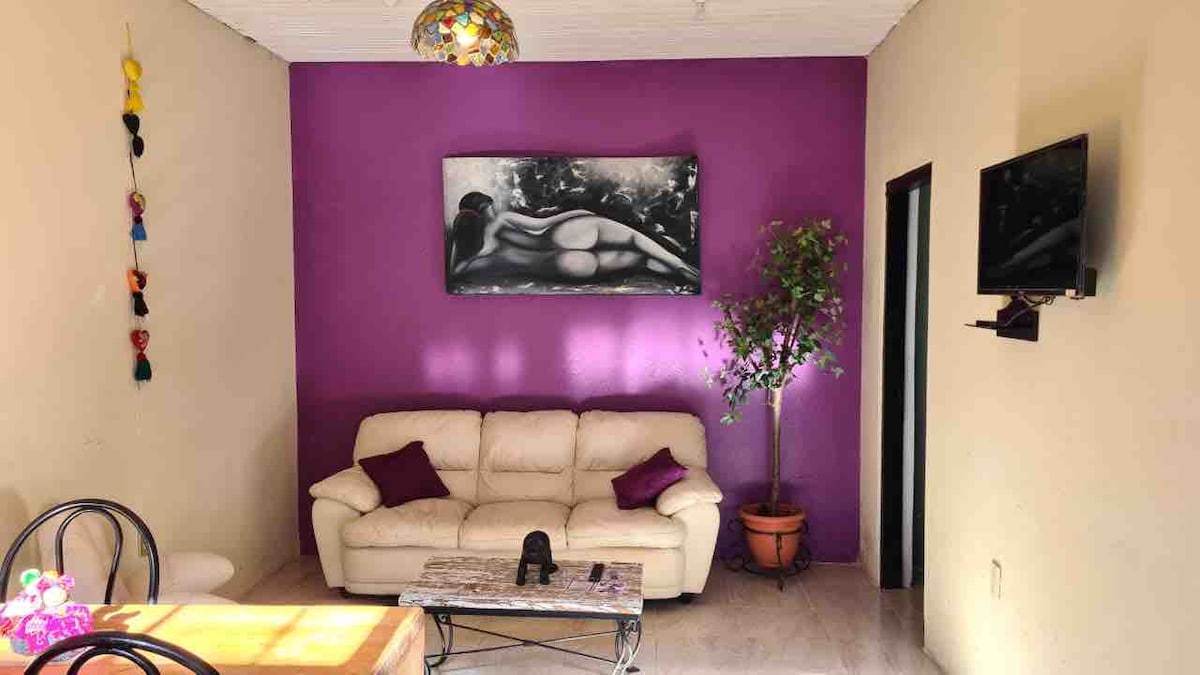 The perfect mix of down town confort and in house entertaiment for your friends or family! From watching the sunset from the hammocks on the tree house, enjoying a bonfire in the yard to laying back after a day trip with Netflix and take out, in front of the fireplace. Plus, amenities like a spacious and equipped kitchen, yard games and even a michelada station. In the heart of town! Only a few steps from the artisanal market, museums, cafés, convenience stores. 5 blocks from the central plaza.