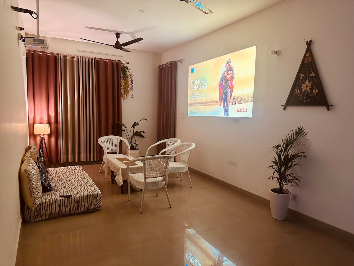 Discover refined comfort in this bright & airy retreat in Sector 70, Mohali, located on the third floor (stairs access) — a perfect getaway for travelers heading to Manali Shimla kufri/Dharamshala Enjoy a private Full HD projector for cozy movie nights. Prime location: • 25 mins to Chandigarh Airport Railway Station & Bus Stand • 15 mins to Fortis, Sohana & Ivy Hospitals • 5 mins to CP67 & Jubilee Walk Near Elante Mall, Rose Garden, Rock Garden & Sukhna Lake. Peaceful, safe & well-connected.