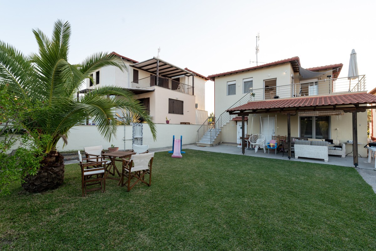Beidh áthas orainn fáilte a chur romhat chuig ár dteaghasán atá athchóirithe agus lánfheistithe le déanaí in Chanioti, Chalkidiki. Tá dhá sheomra leapa, dhá sheomra folctha phríobháideacha, cistin, seomra suí agus gairdín le aeistéitic an - deas i ngach áit sa lóistín. 3 nóiméad ón trá is gaire agus an beár trá a bhfuil tóir air. Ollmhargadh, cógaslann, ATM, bácús laistigh d'achar siúil. Is féidir leat do charr a pháirceáil ar an mbóthar poiblí díreach os comhair an teaghasáin.