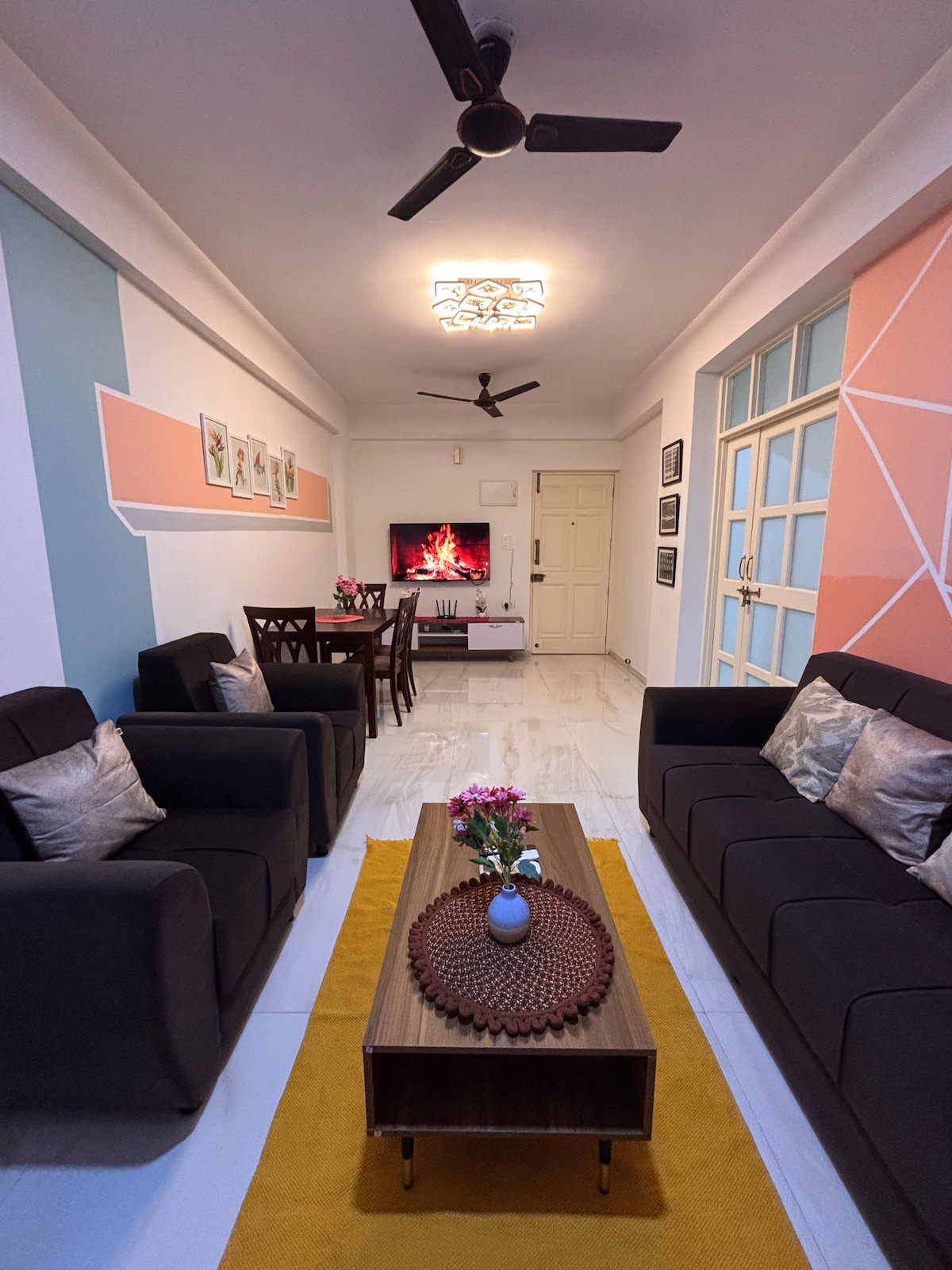 Fáilte go dtí Caisleán White Feather, árasán só 2BHK, díreach nóiméad ó Candolim Beach, North Goa. Bain sult as radhairc iontacha ar an linn snámha agus ar an abhainn ó do bhalcóin phríobháideach. Foirfe do theaghlaigh, do lánúineacha agus do chianoibrithe, le Wi - Fi ardluais, teach aerchóirithe, cistin lánfheistithe, glanadh laethúil, cúltaca cumhachta, páirceáil gheataithe shlán le linn snámha & Spórtlann, saoráidí atá oiriúnach do pháistí. Céimeanna ó bhialanna bríomhara, siamsaíocht oíche, agus tránna cáiliúla. Cuir do shaoire ghearr shuaimhneach ghalánta in áirithe inniu!