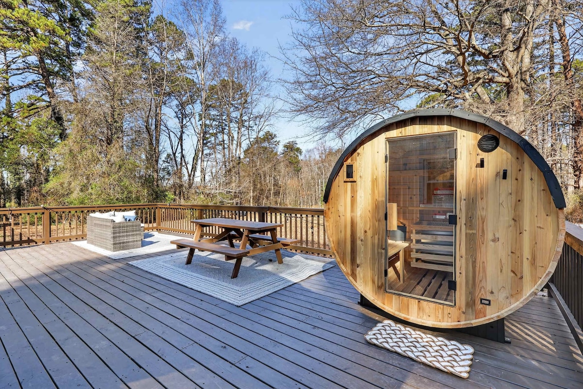 An 1% is fearr de gach lóistín Airbnb! ⭐⭐⭐⭐⭐ Cuntas teiste 5 réalta le haíonna a thagann ar ais. Fáilte go Teeni Santorini, tearmann folláine nuathógtha atá spreagtha ag ár mí na meala sa Ghréig. Tá tobán te príobháideach, sauna bairille, teiripe solais dheirg, cith gaile, ionad aclaíochta, tolglann ar an díon, agus teallach lasmuigh sa teach beag atá deartha go cúramach—foirfe chun scíth a ligean agus do chuid fuinnimh a mhúineadh. Díríonn an díon ar 600 troigh chearnach! Is féidir siúl go NoDa (10–15 nóiméad), Optimist Hall (5 nóiméad), agus Margadh Cheantar Uirbeach (5 nóiméad). Mór ag aíonna: “Ní fanacht amháin atá ann—is tearmann iomlán é.”