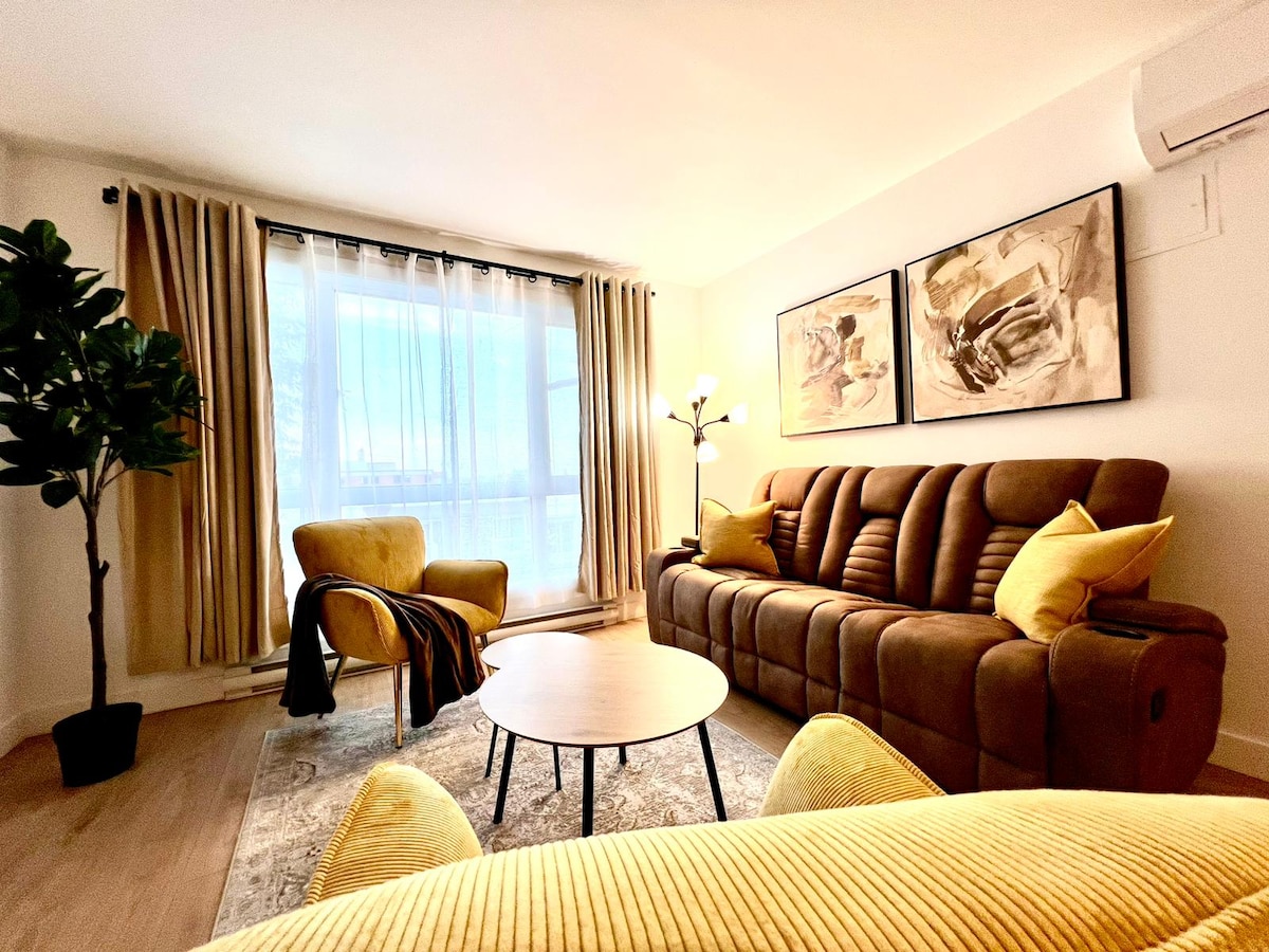 Compord Nua - Aimseartha in aice LE hAerfort Yul! Níl an tearmann galánta seo ach 15 nóiméad ó YUL, ag tairiscint tearmann compoird nua - aimseartha. Gheobhaidh tú gach rud a theastaíonn uait le haghaidh fanacht suaimhneach, lena n - áirítear cistin lánfheistithe le scíth a ligean isteach tar éis lá fada. Suigh siar, bain sult as cupán caife nó tae dea - mhéine, agus féach ar an seó Netflix is fearr leat. Cuir in áirithe anois é agus faigh blaiseadh den mheascán foirfe den áisiúlacht agus den stíl.
