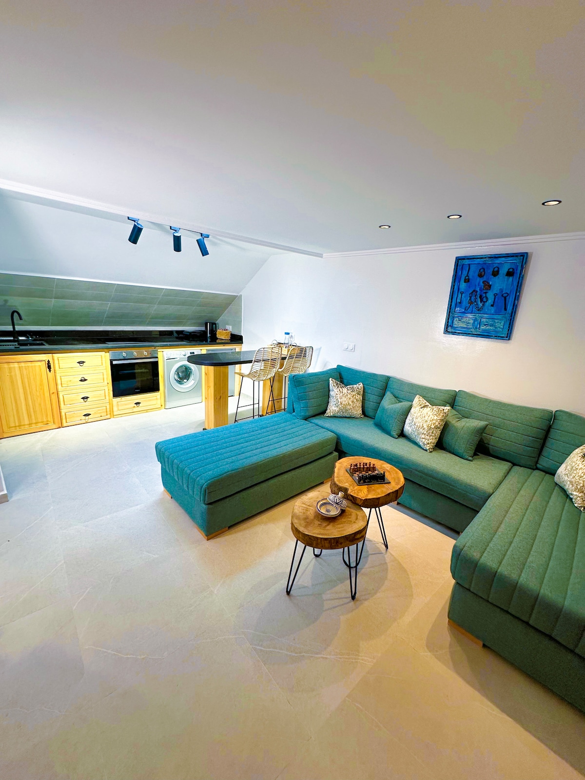 Déan iniúchadh ar an árasán gleoite seo ina bhfuil 2 sheomra leapa i gcroílár Chefchaouen, ina gcomhtháthú compord nua-aimseartha le draíocht bharántúil Mharacó. Bain sult as gairdín príobháideach óna bhfuil radhairc iontacha ar na sléibhte, foirfe don bhricfeasta nó don scíth thráthnóna. Tá an t-árasán seo foirfe do thaistealaithe atá ag lorg síochána, carachtar áitiúil agus suaimhnis, agus cuireann sé fanacht uathúil ar fáil i Blue Pearl Mharacó.