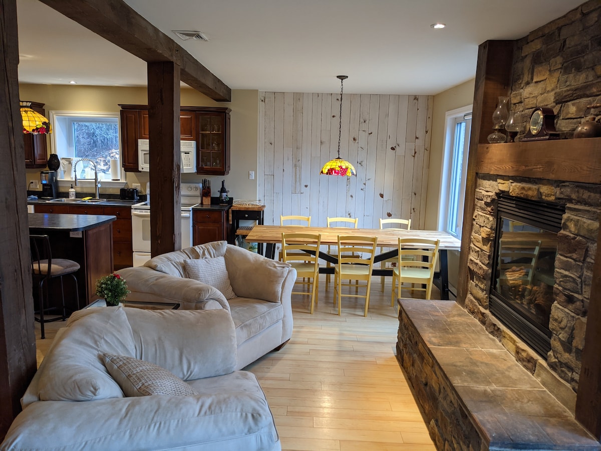 Éalaigh go Chalet Buckingham, tearmann iontach ceithre shéasúr atá suite ar 3 acra de imeall uisce Abhainn Ottawa. Suite 45 nóiméad ar a mhéad ó Ottawa agus 5 nóiméad ó bhád farantóireachta Quyon, tá teacht éasca ar an saoire shuaimhneach seo agus is áit shuaimhneach í chun éalú ón gcathair. Bain sult as báid bheaga agus bréagáin uisce sa samhradh, cócaráil sa chistin mhór lasmuigh ina bhfuil beárbaiciú + oigheann píotsa, agus lig do scíth sa tobán te foscúil 8 nduine atá ar fáil ó cheann ceann na bliana. Faigh suaimhneas agus eachtra in aon cheann scríbe foirfe amháin.