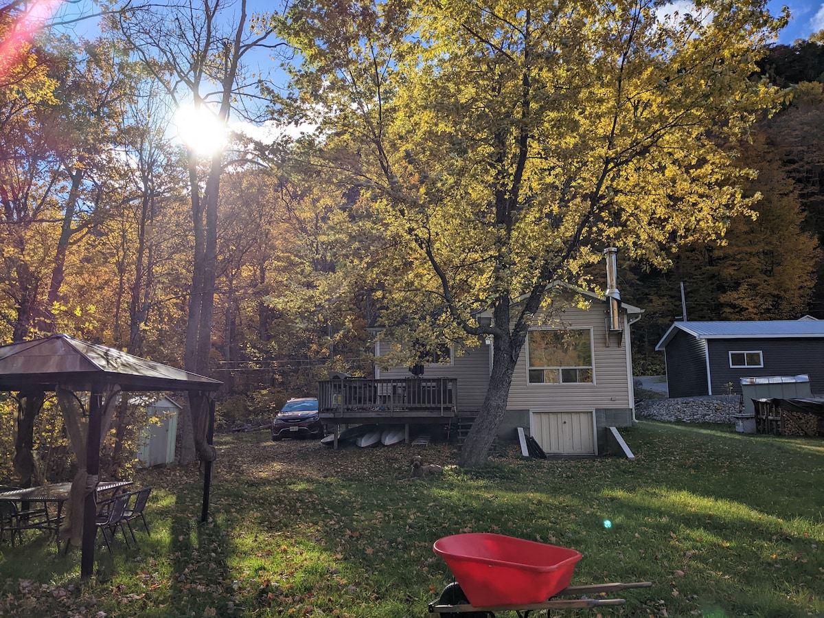 Tá an teachín cluthar seo suite go díreach ar imeall an uisce ar abhainn Ottawa os comhair oileán Mohr. Tá sé foirfe do lánúin nó do theaghlach beag atá ar shiúl ón gcathair. Is féidir leat do scíth a ligean cois uisce ar an deic sa tobán te, dul ar eachtra i gceann de na cadhcanna nó taitneamh a bhaint as tine champála agus tú ag breathnú ar na réaltaí leis an gcoill dóiteáin a sholáthraítear. Tá canoe agus dhá kayaks le 4 pacaí tarrthála ar fáil do aíonna agus tá siad san áireamh le do cíos. Ar an drochuair níl ár n - áit oiriúnach do mhadraí.