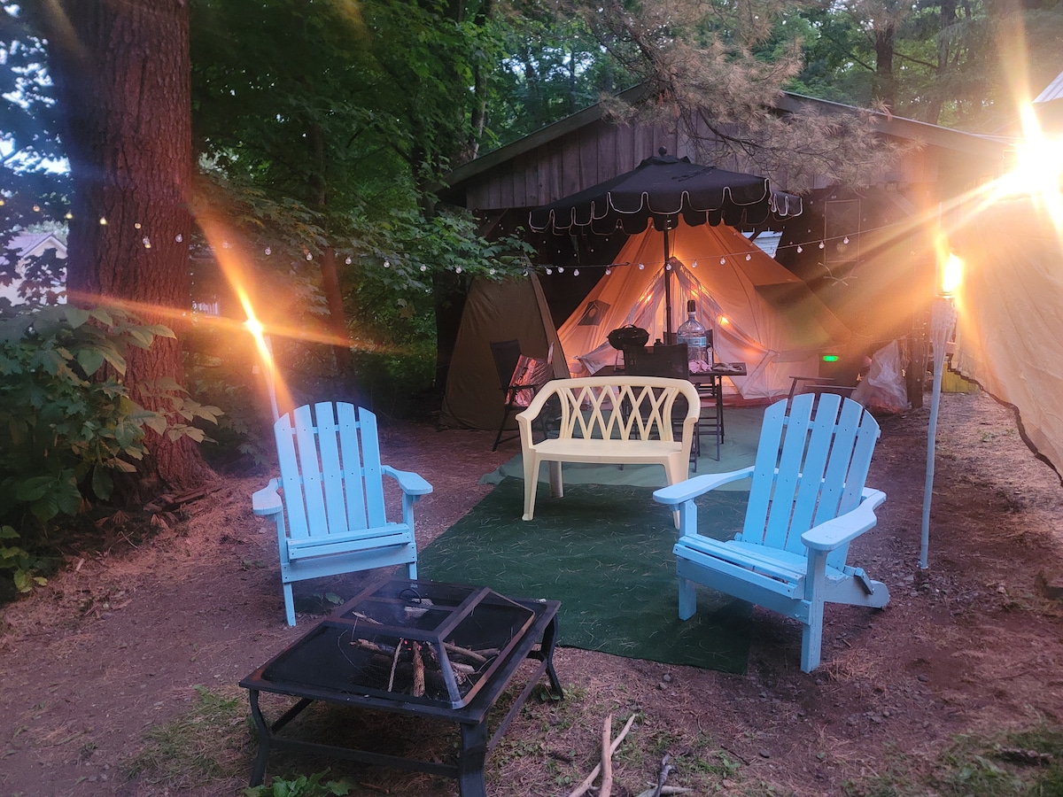 Éalú dúlra dodhearmadta ag an Escapology! Glac síocháin i measc duilliúr álainn le do pheata le do thaobh. Cuirtear draíocht den scoth, saoráidí bunúsacha, leaba ar mhéid na banríona, agus bunriachtanais chaife ar fáil chomh maith le soláthar bunúsach uisce le haghaidh úsáid an champa. Tosaigh tine champa faoi na réaltaí le connadh ar fáil le ceannach. Athcheangail le simplíocht agus serenity anseo. Déan iniúchadh ar NY River Adventures @ Tall Pines (5.6 míle) le cadhcanna nó scíth a ligean le leann úll úrnua ag Awestruck Ciders (3.4 míle).