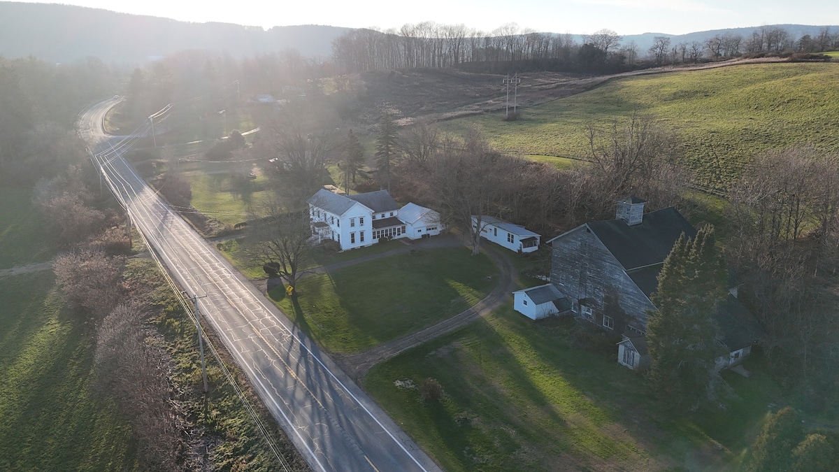 Teach álainn le bua ealaíonta suite ar 66 acra díreach 2 mhíle taobh amuigh de bhaile Bainbridge, NY. Cuireann an taobh istigh urláir adhmaid atá maisithe go hálainn de láimh, cistin agus seomra folctha geal agus seomra leapa chomh maith le dhá sheomra leapa chompordacha ar fáil. Tá an seomra suí mór fairsing le radhairc ar chnoic rollta, lochán príobháideach, agus páirceanna feirme. Mar gheall ar an ngaireacht do chosáin Loch na Méar, Catskills agus Ithaca, tá an suíomh seo inmhianaithe do shiúlóirí, do lucht leanúna spóirt an gheimhridh, agus do dhaoine a bhfuil dúil acu sa dúlra araon!
