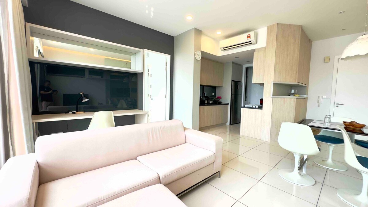 190+ léirmheas 5 ⭐️!! 📍Cónaitheacht Pertama, Kuala Lumpur GNÉITHE: - Jacuzzi Príobháideach - Scáileán teilgeora is mó i gcuntas seomra leapa w/ Netflix curtha ar fáil - Páirceáil Laistigh Saor in Aisce - In aice le MRT (siúlóid 7 -10 nóiméad go MRT Taman Pertamaa) - Féinseiceáil Isteach /Seiceáil Amach CÓNGARACHT: Treoluas Sunway ( 5 nóiméad ) STÍL Mhaireachtála Aeon ( 5 nóiméad ) MyTown & IKEA ( 7min ) KLCC (10 nóiméad ) MRT Pertamaa (siúlóid 7 nóiméad ) Seiceáil isteach : Tar éis 3pm Amharc : Roimh 12pm