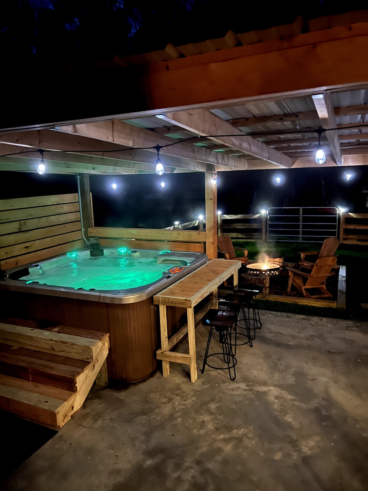 Teach Uathúil Aingeal - leaba mhór compordach, seomra folctha, cistinéad le mionchuisneoir, pláta te, doirteal agus tobán scairdí laistigh. Suigh i gceantar na bpadóg cois teallaigh leis na capaill, tóg tine, bain súp as fíon leis na capaill. Taobh amuigh de do dhoras tá poll dóiteáin le gríoscán. Cosáin fánaíochta ar an láthair. Madra amháin atá oiriúnach do mhadraí. Póirse compordach le cathaoireacha luascáin Breiseáin: Dinnéar ullmhaithe duit tine oscailte $130 an lánúin Clár Charcuterie agus buidéal fíona $45 Teiripeoir suathaireachta ceadúnaithe $115 $200 lánúin Iarratas ag an áirithint
