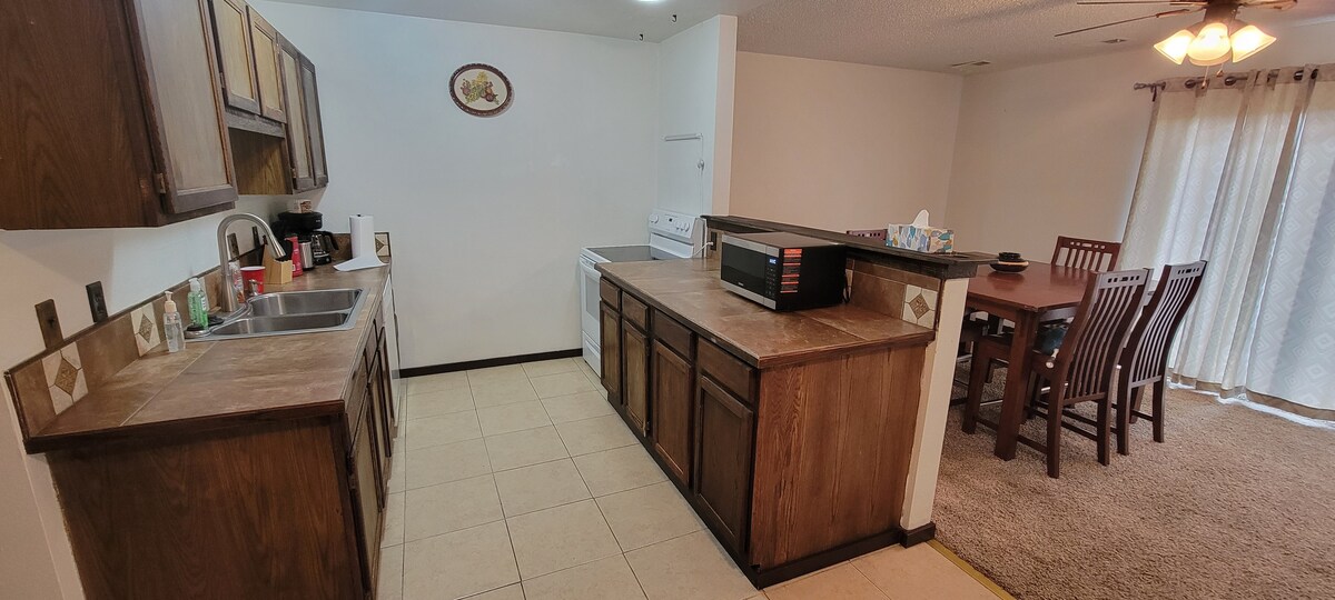 Fáilte chuig d'fhanacht foirfe in Cheyenne atá suite faoi bhun 10 mbloc ó Lions Park agus Cheyenne Frontier Days araon. Cuireann an t - árasán seo atá suite go lárnach gar don ghníomh thú agus áit chompordach le scíth a ligean á tairiscint agat. Tá an t - árasán seo oiriúnach d'aíonna atá ag lorg meascán de áisiúlacht, compord agus suíomh - iad uile in aon spás amháin atá deartha go tuisceanach agus a bhfuil rochtain ar an staighre ag teastáil. Dún rochtain ar chúirteanna liathróid phicil (picil/raicéid curtha ar fáil), siopaí caife, & bialanna. Tá súil againn go mbeidh d'fhanacht compordach!