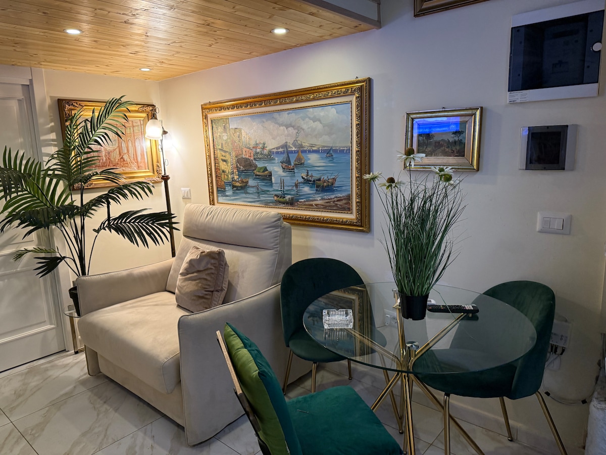 Tá an teach nua - chóirithe 40m2 suite in Marina Corricella, limistéar do choisithe go héasca, 7mt ón bhfarraige. Chun an teach a bhaint amach, tá 2 fhoireann staighrí ar feadh 30 céim san iomlán. Ón ardán beag is féidir leat breathnú amach ar theacht na n - iascairí. In aice láimhe tá bialanna, beáir, siopaí uachtar reoite agus siopaí lámhcheardaíochta áitiúla. Is féidir teacht ar thrá Chiaia le cosa (20min) nó ar sheirbhís báid tacsaí. San earrach/samhradh tá iompar paisinéirí ar hidreafoil ó Sorrento go Procida gníomhach