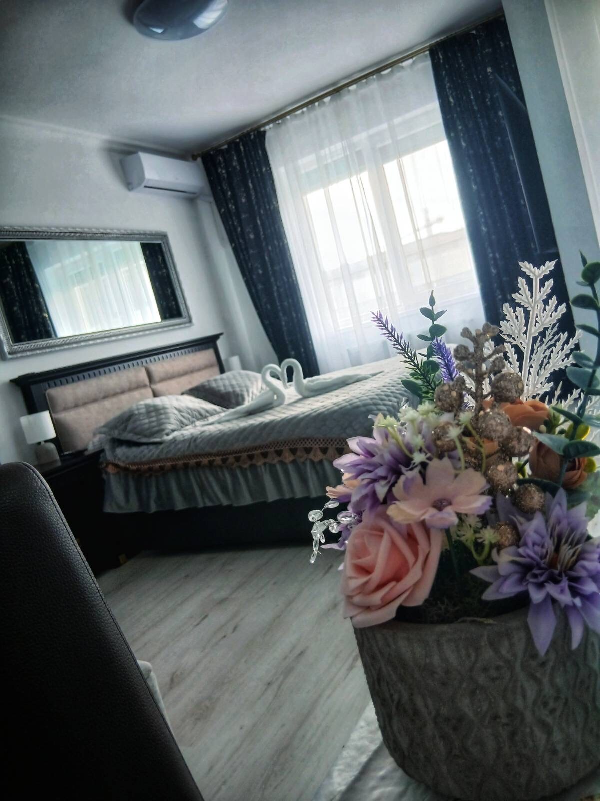 Această locuință unică are un stil propriu în care te poți bucura alături de partener de clipe de neuitat. În locuința noastră vei găsi tot ce ai nevoie pentru a savura momente de plăcere maxima. Apartamentul este echipat cu facilități moderne, jacuzzi cu lumini și muzica. Pentru a avea o experiența memorabilă ne-am gândit să aducem un plus de valoare și sentimente așa ca am creat PACHETUL ROMANTIC și PACHETUL ANIVERSAR Pentru mai multe detalii, ne auzim la telefon.