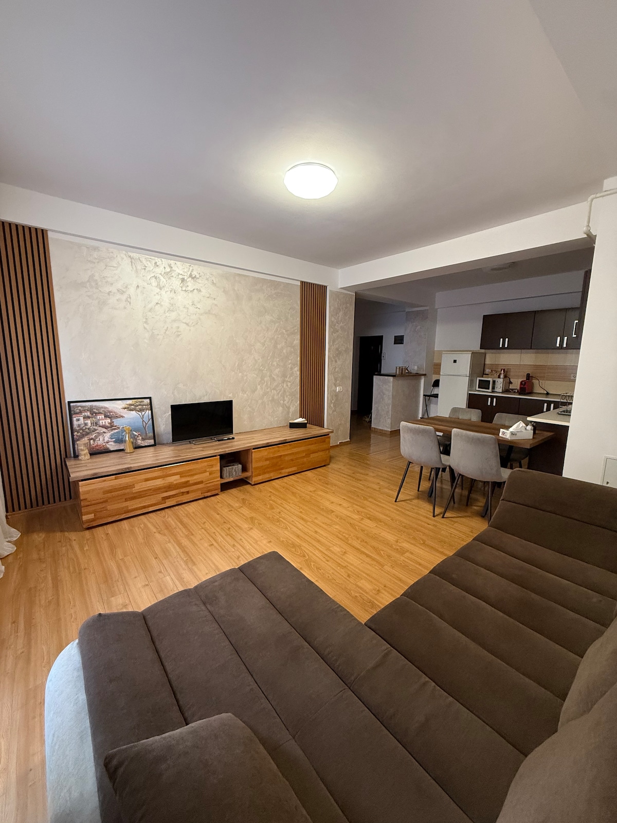 Stiúideo nua-aimseartha, lánfheistithe, foirfe do thréimhsí fanachta gearra nó níos faide. Tá leaba rí compordach, cistin lánfheistithe, seomra folctha príobháideach agus WiFi tapa san árasán. Tá an suíomh go hiontach, gar d'iompar, do shiopaí agus do bhialanna. Foirfe do lánúineacha, do thaistealaithe gnó nó do thurasóirí atá ag lorg compoird agus príobháideachta i spás teolaí fáilteach.