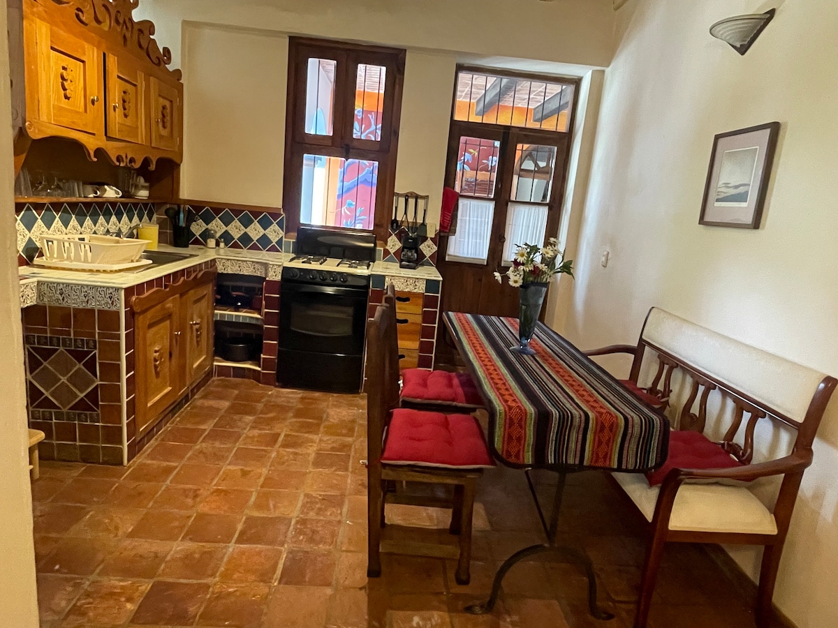 Comhcheanglaíonn Casa Azabache stíl chomhaimseartha le hailtireacht choilíneach Mheicsiceo. Tá ballaí Adobe, síleálacha adhmaid agus paitió istigh le tacaíocht ó cholúin adhmaid mar chuid dár suíomh. Táimid suite i gcroílár San Cristobal, siúl 5 nóiméad ón gcearnóg lárnach agus cúpla méadar ón bpríomhchoisithe Real de Guadalupe. Tá 8 seomra againn, cistin mhór gheal, úllord agus clós a thugann cuireadh duit scíth a ligean nuair a análú aer úr agus úr.