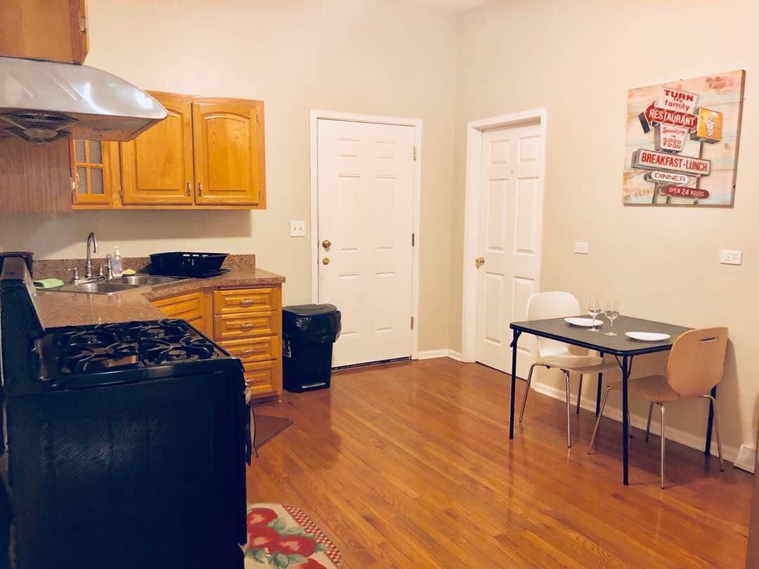 Suíomh iontach i bpobal Wicker Park/Bucktown Chicago. Seomra suí atá feistithe go hiomlán, seomra leapa ina bhfuil leaba bhanríona agus seomra folctha. Idirlíon, téamh lárnach/ac, cuisneoir beag, micreathonnán, teilifís chábla, dvd/Blu - ray, déantóir caife. Beag sábháilte. Páirceáil phríobháideach saor in aisce. Bloc amháin ón líne ghorm (Rannán). Ó O’Hare tríd an traein – 35 nóiméad. 10 nóiméad go dtí an chathair trí líne ghorm.
