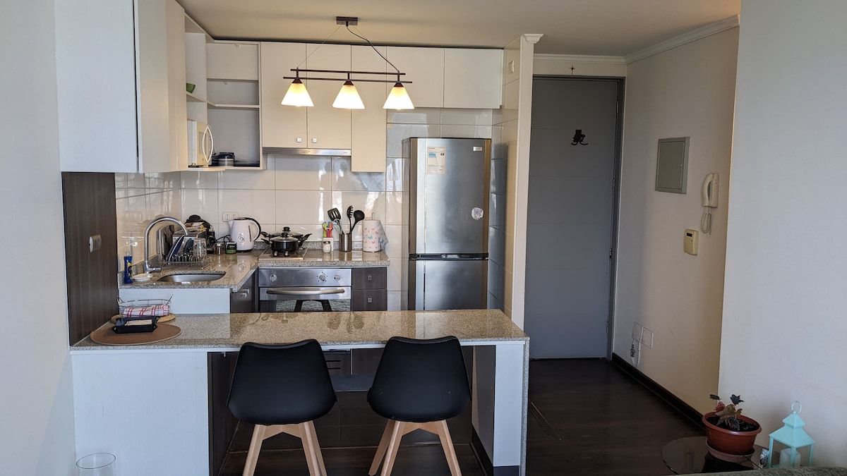 Bain sult as an Roinn Centro álainn compordach seo in Concepción. Tá leaba dhúbailte Cic Premium, 1 seomra folctha, teilifís, netflix agus idirlíon ann. Cistin fheistithe le hoigheann, cuntar 2 chúrsa, cochall, gréithe agus gréithe, citeal, tóstaer, micreathonnán, srl. Tá rochtain concierge 24 uair an chloig aige. Níl Peata ar bith ann.