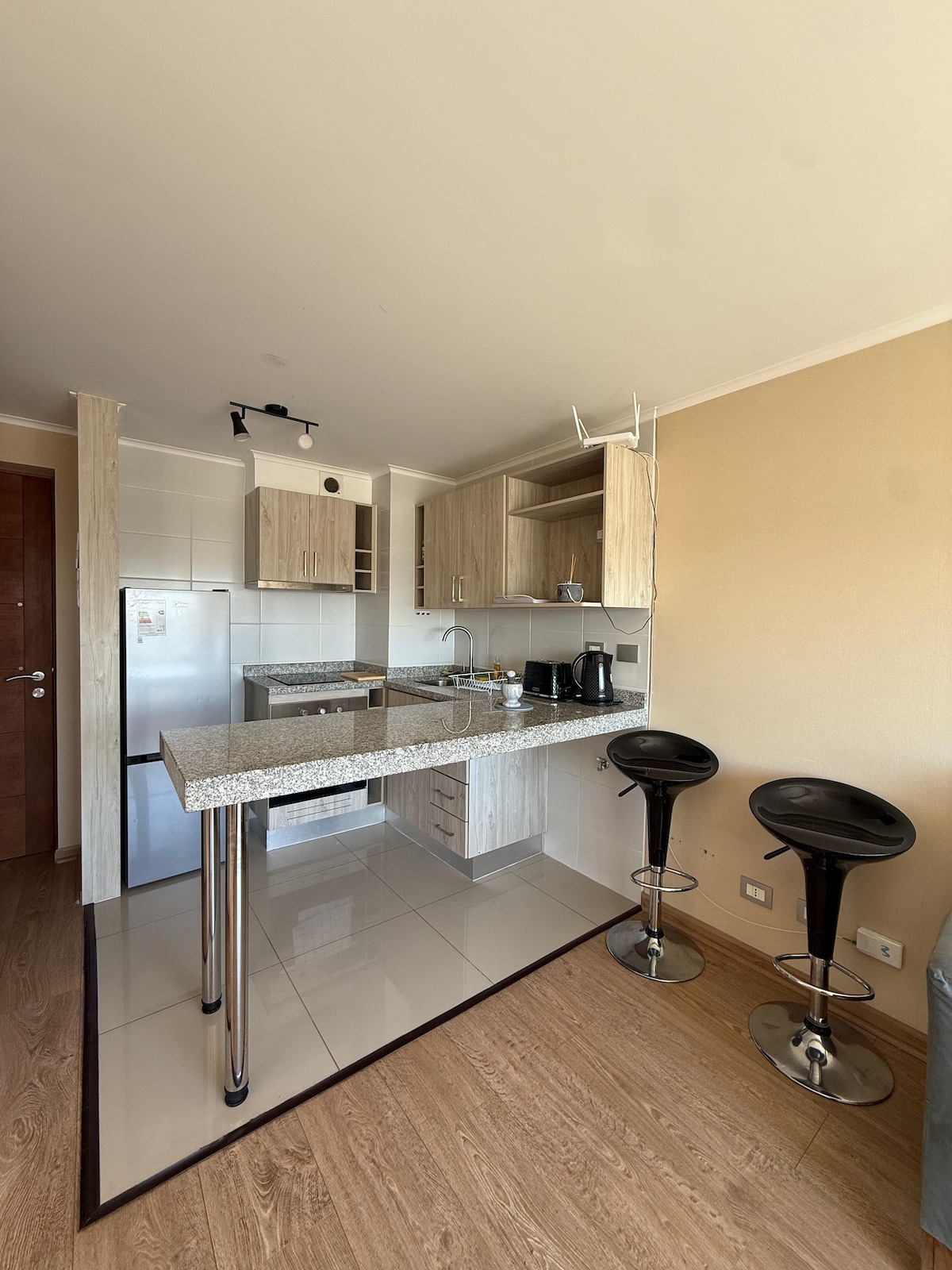 Departamento céntrica ubicación, cuenta con: • Dos Dormitorios (1 cama matrimonial y 1 de una plaza) • Termopanel • 1 baño • 1 sofá cama cómodo (Estándar Apart Hotel ) • Cocina americana full equipada, Full Electric. • Escritorio • Conexión Wifi • Smart TV en habitación principal • Calefacción Eléctrica Conserjería 24 horas Estacionamiento (no apto para camioneta grande)