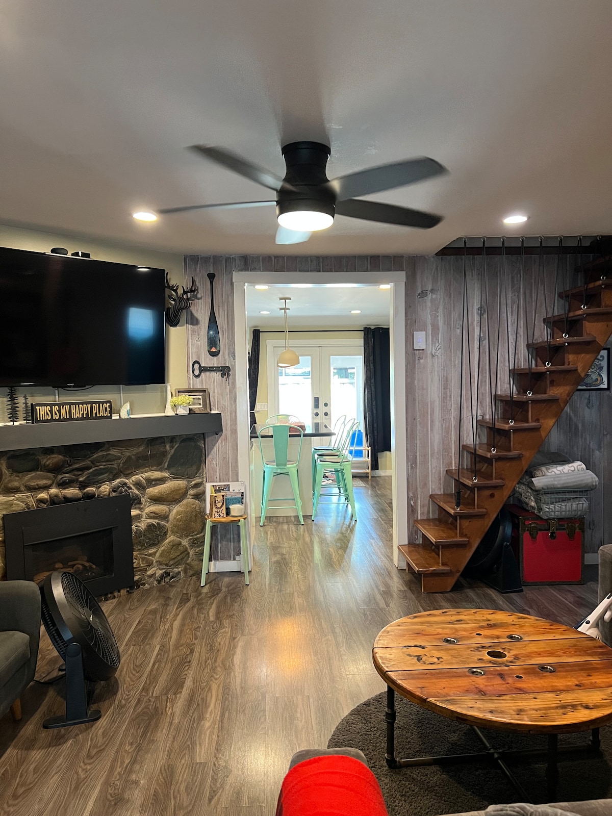 Is áit iontach é an teach saoire dhá sheomra leapa 4 sheomra leapa seo, 2 sheomra folctha chun iniúchadh a dhéanamh ar na sléibhte. Tá áit suí/itheacháin sa teach atá oscailte don chistin, lena n - áirítear teallach gáis, monatóir mór scáileáin le sruthú Roku, agus tá leapacha banríona i ngach seomra leapa. Amuigh faoin aer gheobhaidh tú amach gríoscán gualaigh, bord mór picnice, agus tobán te. Is siúlóid ghearr é an teach go dtí an abhainn agus cosáin fánaíochta gar dó.