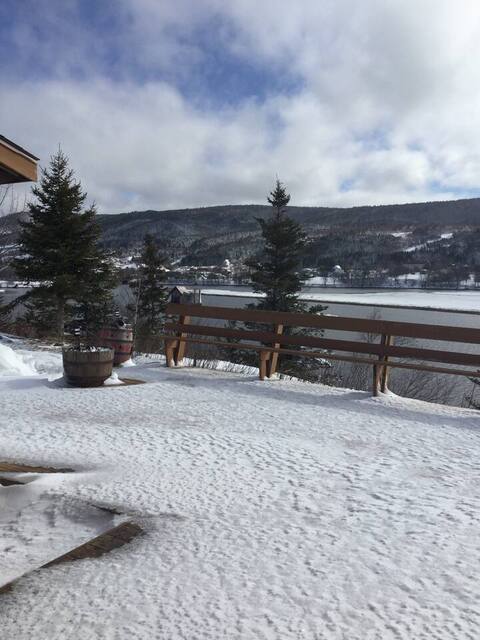 Moilligh agus aimsigh áit dhraíochta atá lán de chroíúlacht, de dhraíocht agus de shaoráidí sainiúla. Cábán chic, timpeallaithe ag trí thaobh le coillte, le radharc iontach ar Ardchríoch Cape Breton. Díreach taobh amuigh de Chonair cháiliúil Cabot, bloic ón bhfarraige, cé go bhfuil siad fós laistigh den bhaile, taitneamh a bhaint as ciúin agus áisiúlacht. Adhmad fired tub te agus oigheann pizza. (Adhmad curtha ar fáil) Siúlóid cúig nóiméad chuig bialann agus beár álainn L'abri, ach beagán níos faide ó ionad ceoil The Doryman.