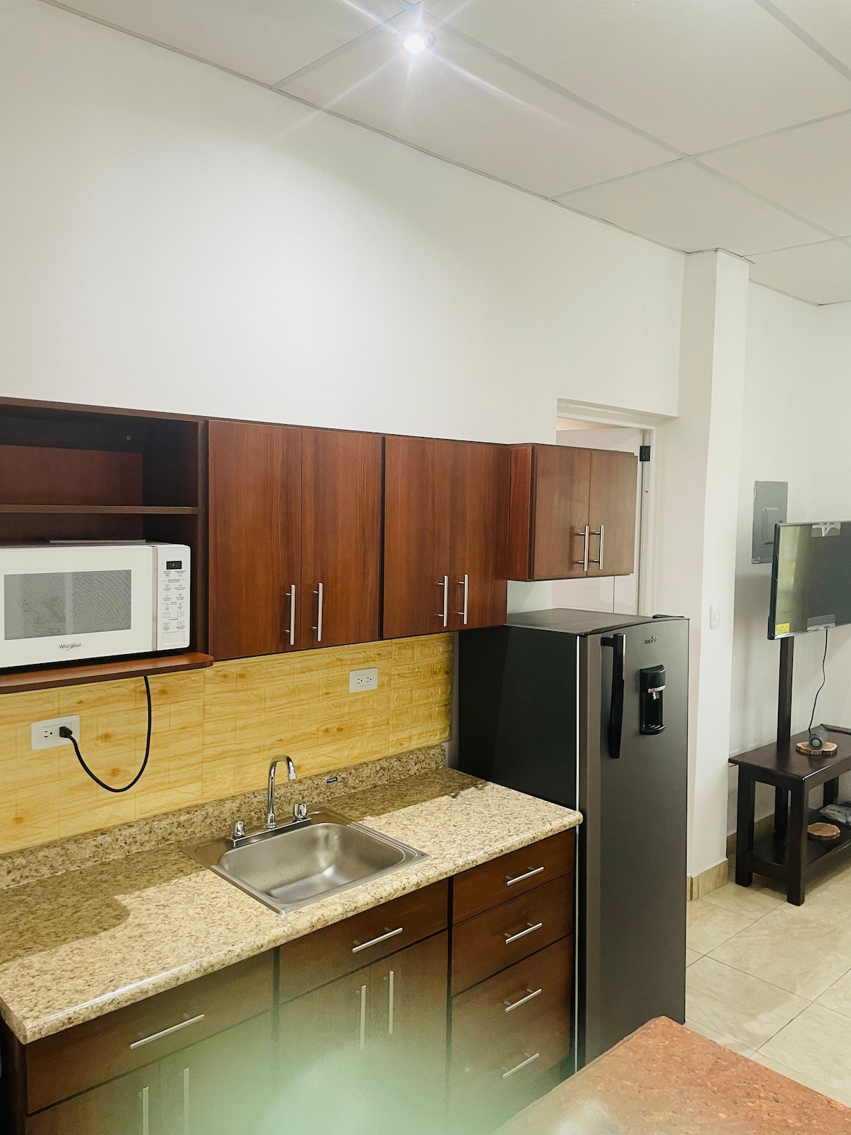 Teach iomlán ina bhfuil saoráidí nua, atá suite i gceantar cónaithe sábháilte, os comhair ionad siopadóireachta Pradera Chiquimula: ceantar ina bhfuil bialanna, pictiúrlanna, siopaí, srl. Tá 2 sheomra leapa sa teach, ceann amháin ina bhfuil leaba ríomhéide agus an ceann eile ina bhfuil leaba banríomhéide. A/C sa dá sheomra leapa.