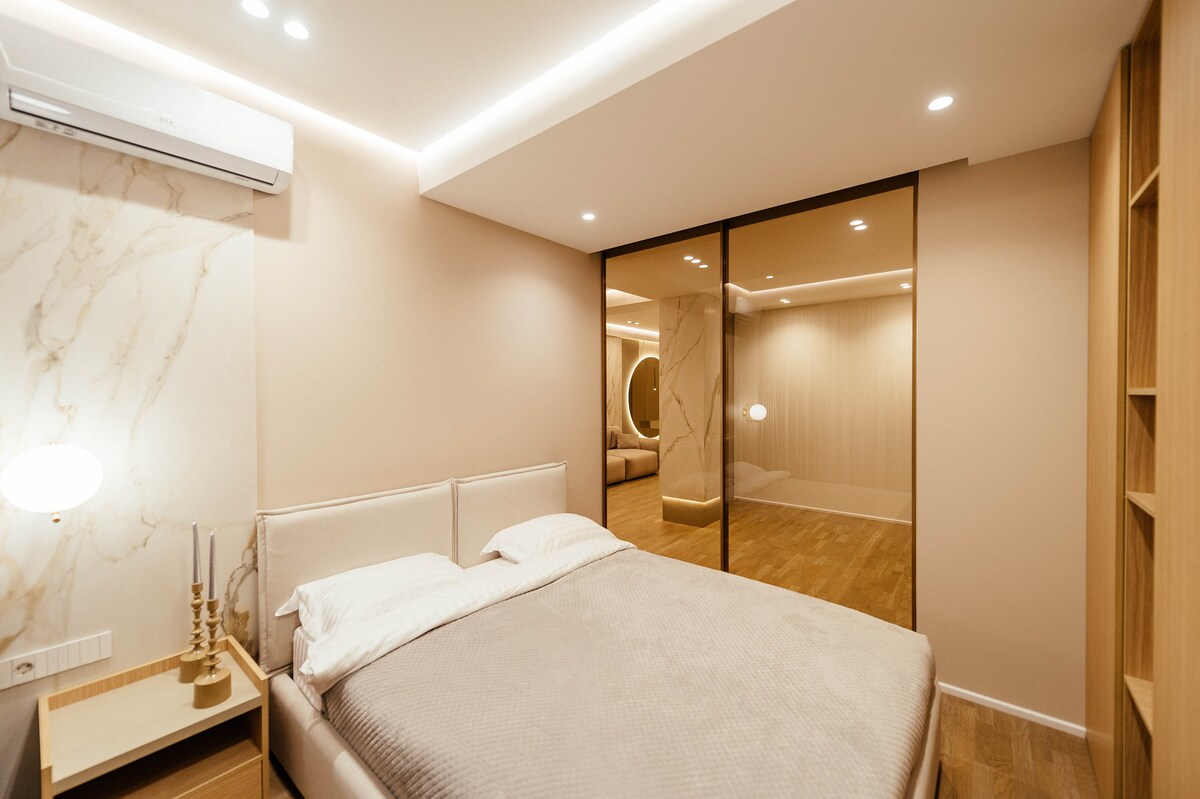 Árasán Chic agus compordach i gcroílár na cathrach. Níl le déanamh ach céimeanna ón margadh lárnach, amharclanna, caiféanna agus na bialanna is fearr. Bain sult as taobh istigh galánta nua - aimseartha ina bhfuil leaba chluthar bhanríona, Wi - Fi tapa, agus cistin lánfheistithe. Foirfe do lánúineacha, do thaistealaithe aonair, nó d'aíonna gnó. Siúil i ngach áit agus cuir an cultúr, an stair agus an fuinneamh áitiúil ar maos. An bonn iontach do d'fhanacht cathrach dodhearmadta!