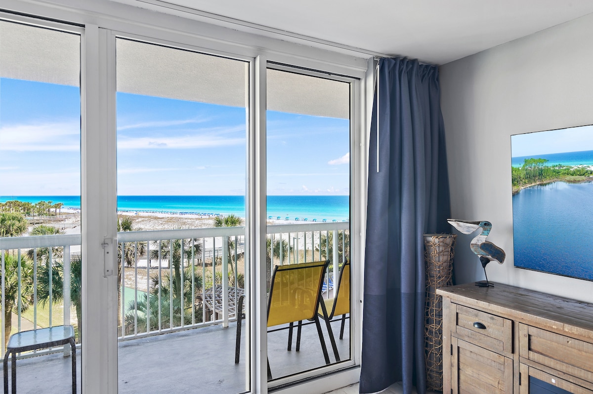 * na RADHAIRC IS FEARR & SUÍOMH* Árasán tosaigh na trá ag ceann de na hionaid saoire is fearr in Destin ina bhfuil na saoráidí go léir! Ól do chuid caife agus manglam ó do bhalcóin ar an 15ú hurlár agus tú ag baint taitneamh as radhairc lánléargais ar uisce geal smaragaidh agus tránna gainimh bháin Destin. Leapacha rí agus leathphéire compordacha agus dallóga lándorchaithe Linn snámha, tobán te, Tiki Bar & Cafe Giomnáisiam, sabhna, cispheil, pickleball, leadóg Páirceáil saor in aisce agus Wi-Fi tapa Sáróstach agus Mór ag Aíonna—cuir in áirithe go muiníneach! An bhfuil tú réidh le cuimhní cinn trá? Cuir do dhátaí in áirithe inniu!