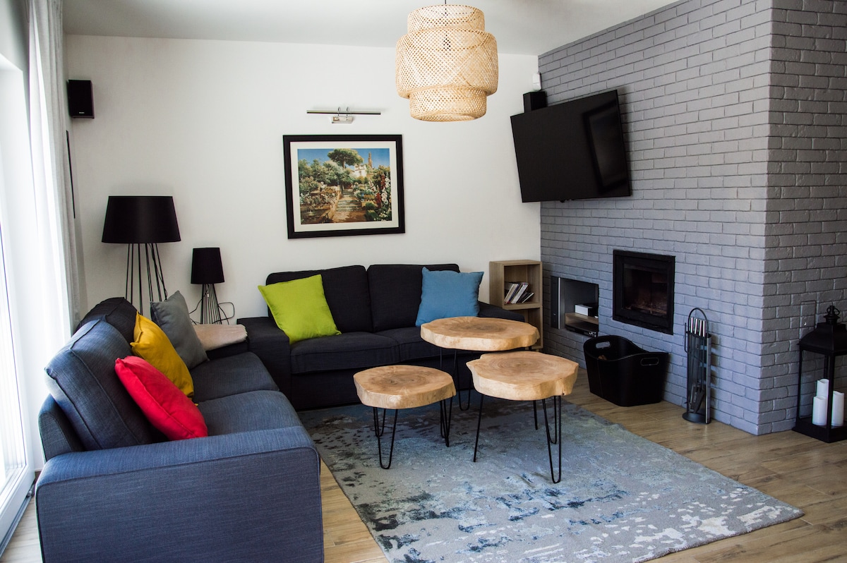 Is féidir le gach aoi taitneamh a bhaint as taobh istigh fairsing neamhghnách na háite seo. Tugaimid cuireadh duit do scíth a ligean in Wdzydz, ceann scríbe turasóireachta atá suite go hálainn i gcroílár Kashubia in Bory Tucholskie ar Loch Wdzydzkie. Cuirimid lóistín ar fáil duit i dteach leathscoite adhmaid compordach ó cheann ceann na bliana. Tá an teach feistithe go hiomlán, chomh maith le teallaigh tá téamh lárnach ann. Cuirfidh radhairc áille, an fhoraois in aice láimhe agus cóngaracht na lochanna ar do shuaimhneas thú anseo.