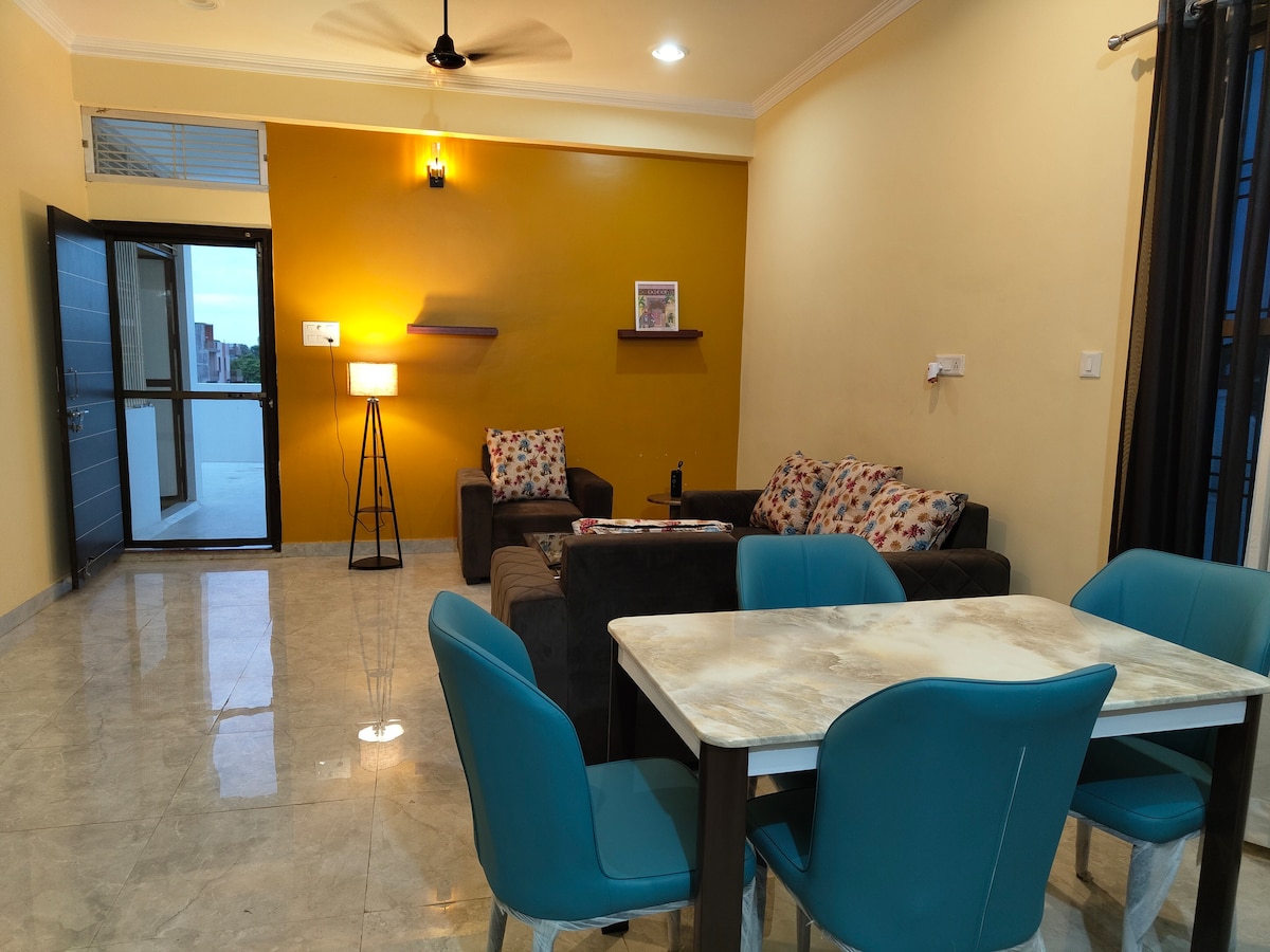 Tá ár n - árasán 2BHK fionnuar compordach in árasán ilstórach atá suite go lárnach. Tá na háiseanna nua - aimseartha go léir aige leis an áit pháirceála. Tugann sé an phríobháideacht iomlán duit. Tá páirc bogshodair díreach sa bhreis ar an árasán. Tá an Margadh, an Teampall, an tOspidéal agus ionaid siopadóireachta laistigh d'achar 1.5 km. Tá an seomra aclaíochta príobháideach ar fáil ar chostas breise freisin. Ceadaítear an rochtain ar chistin atá feistithe go hiomlán le costas cothabhála breise. Fanfaimid san árasán céanna a chabhróidh leat do riachtanais a aimsiú.