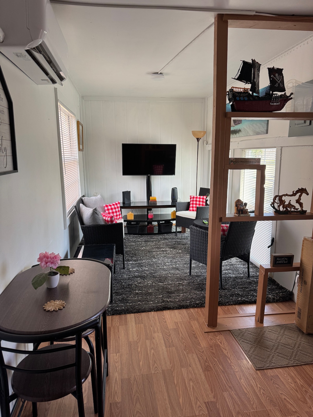 Our airstream has all the amenities you need. It is located in our one acre property behind our house (very private) the parking is on the side of our house next to our carport and you will go through a gate and follow the path to the airstream. MCO Airport 12 miles Disney parks 25 mil Universal Studios 16 mil beaches 50 mil UCF 2.4 mil Full Sail 2.4 mil Valencia 3.5 mil Dining, Shopping entertainment and much more!